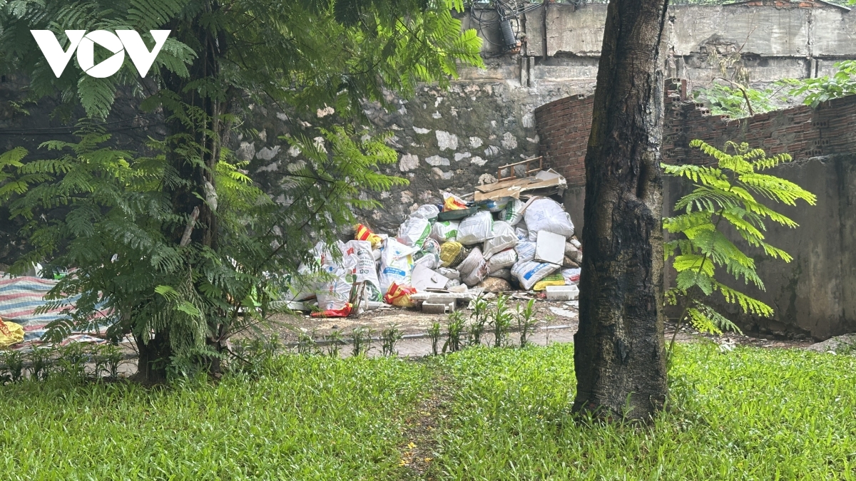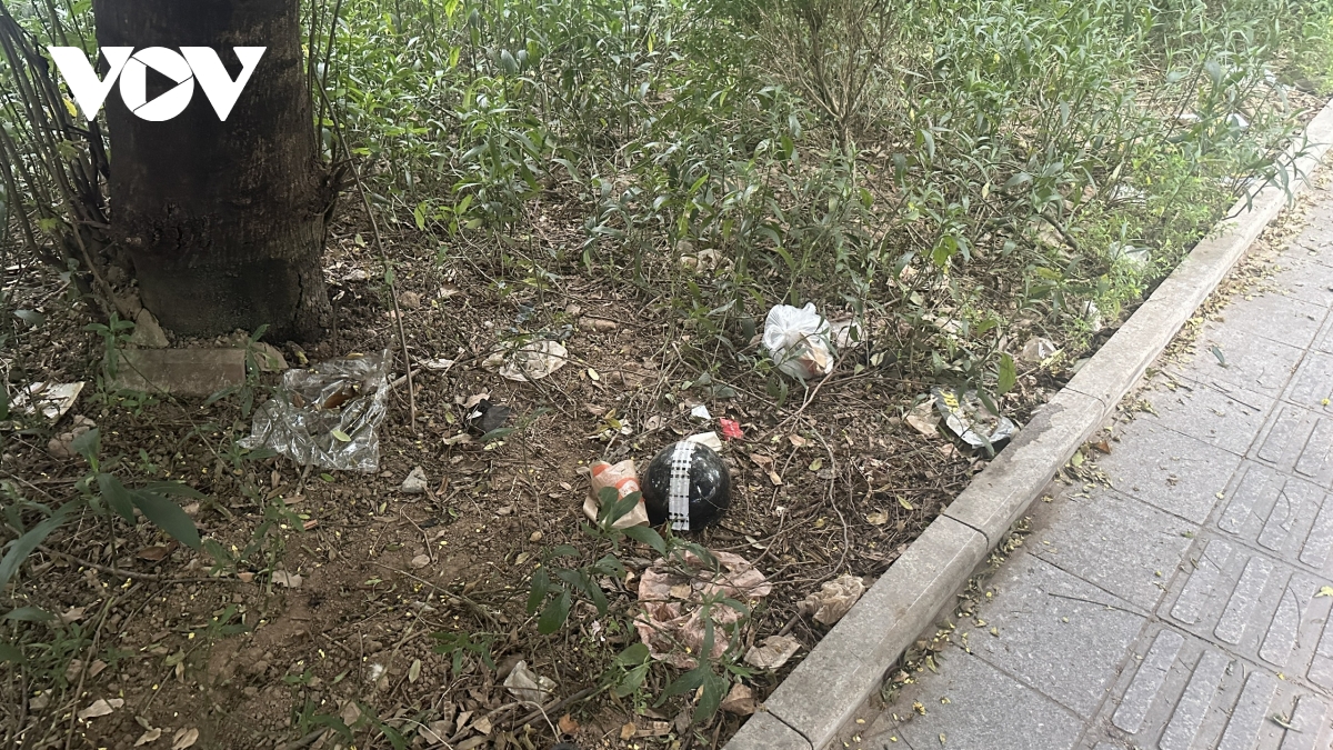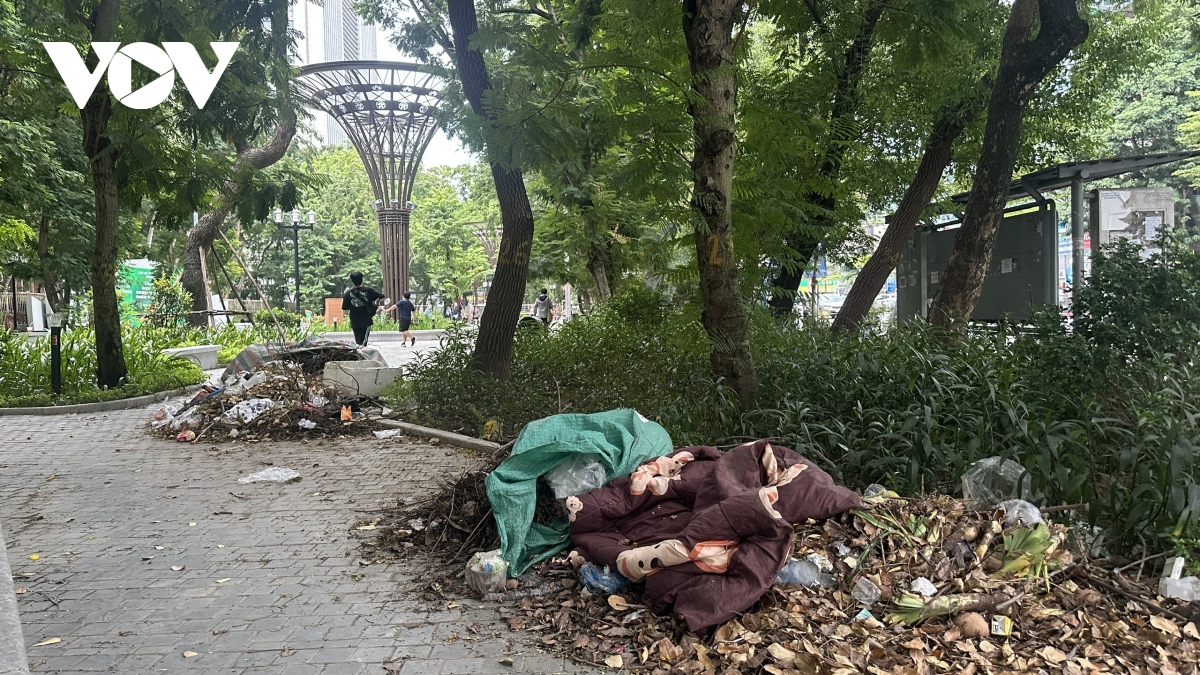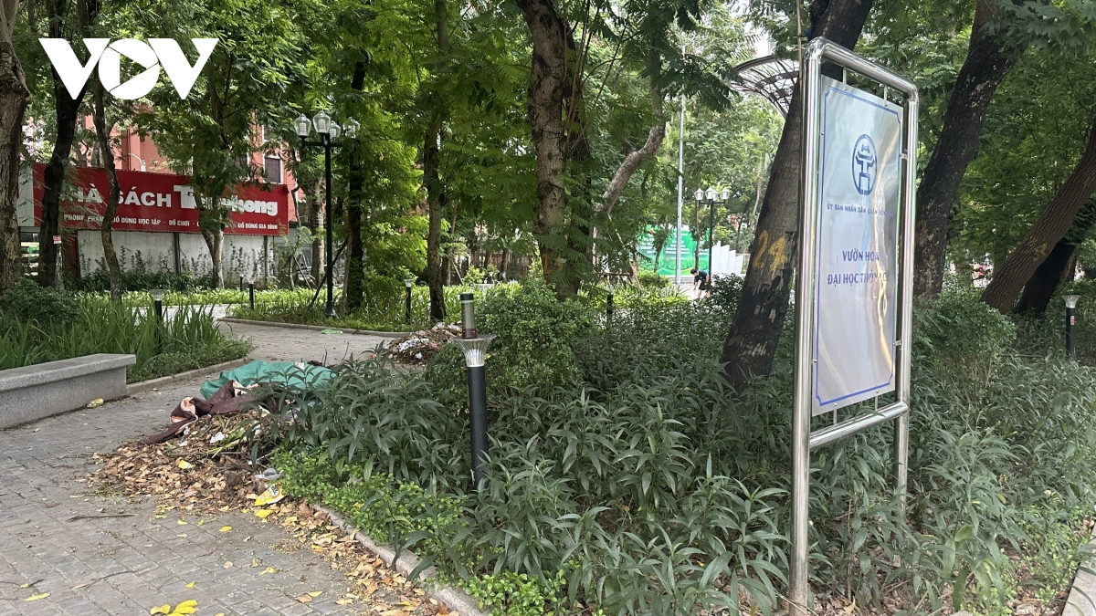 Ghi nhận của phóng viên, Vườn hoa Đại học Thủy Lợi (phường Kim Liên) trên đường Tây Sơn xanh mát, cây cối rợp bóng nhưng lối đi đường dạo vẫn ngập rác thải.