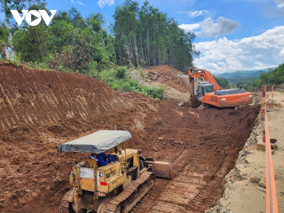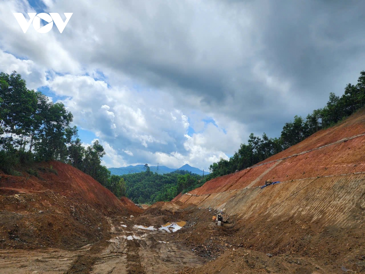 Nguyên nhân là bởi nguồn vật liệu đất đắp chủ yếu là đất điều phối trong dự án, tuy nhiên các thủ tục chuyển đổi mục đích sử dụng rừng chậm, từ giữa tháng 5/2025 nguồn đất đắp mới được khơi thông và cấp phép khai thác.