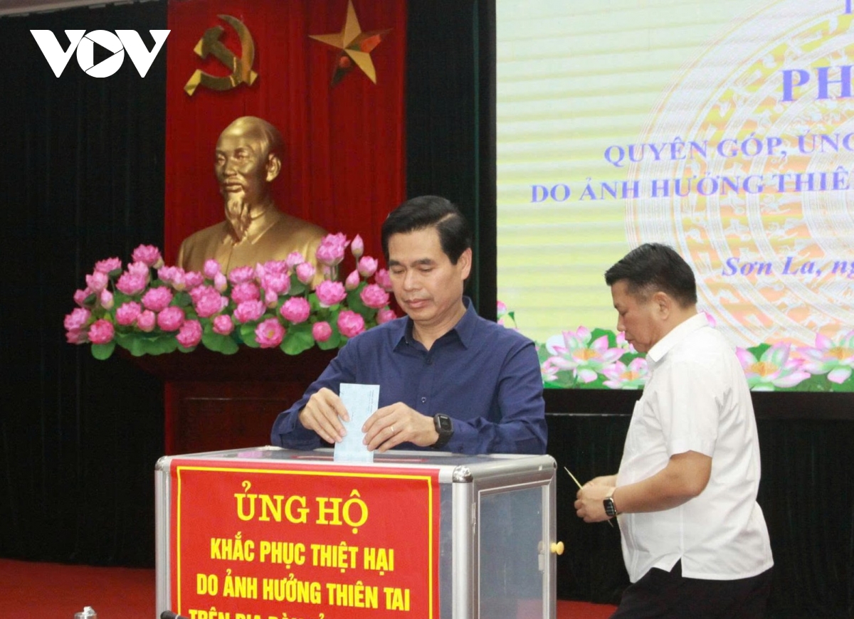 VOV.VN - Chiều 29/7, tỉnh Sơn La tổ chức phát động quyên góp, ủng hộ khắc phục hậu quả thiệt hại do ảnh hưởng của mưa lũ xảy ra trên địa bàn; nhằm giúp đỡ nhân dân và các địa phương sớm khắc phục hậu quả thiệt hại, nhanh chóng ổn định đời sống và sản xuất sau thiên tai.