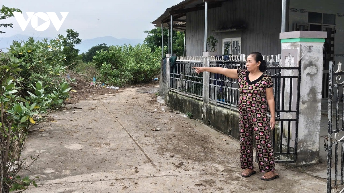 Bà Đồng Thị Kim Minh, người đã gắn bó gần nửa đời người tại đây, xót xa chứng kiến dòng sông "nuốt" đất mỗi năm từ 2 – 4 mét. Chỉ tay về phía sau nhà, bà Minh lo lắng: "Khu này trước đây có làm kè phía dưới, phía trên thì không, nước lũ về nó xoáy làm lở đất bờ. Tôi ý kiến thì họ làm kè lên cao. Rồi họ có nói là năm sau sẽ làm kè từ đây lên trên đầu xóm, họ đã móc lỗ sâu gần 10 mét, rồi để đó không làm. Giờ nước lũ về nó xoáy khiến sạt lở đất, chút nữa là sụp nhà cô Cẩm rồi. Nước lũ về đợt vừa rồi làm sạt lở đất ầm ầm, sợ lắm".