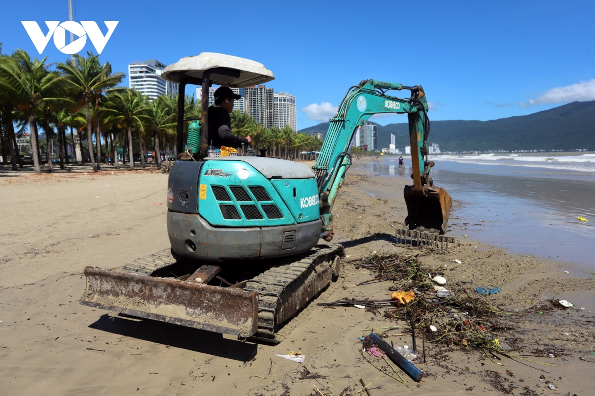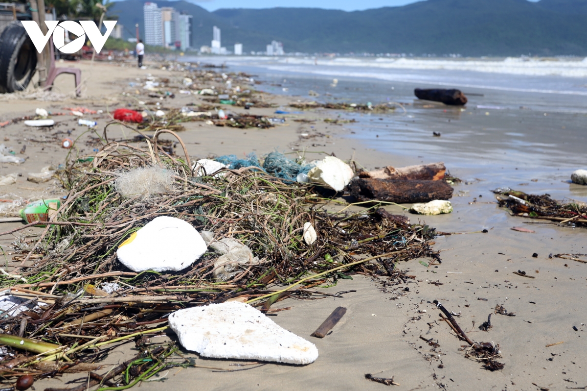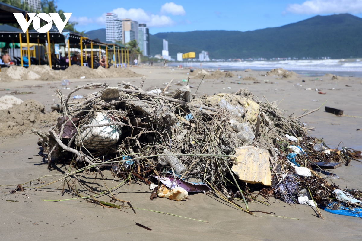 Sau bão số 13, bãi biển Đà Nẵng ngập tràn rác