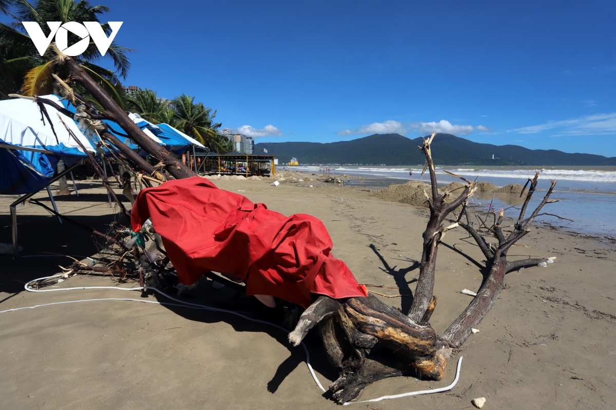 Cây trôi dạt tấp vào hàng quán dọc bãi biển Đà Nẵng