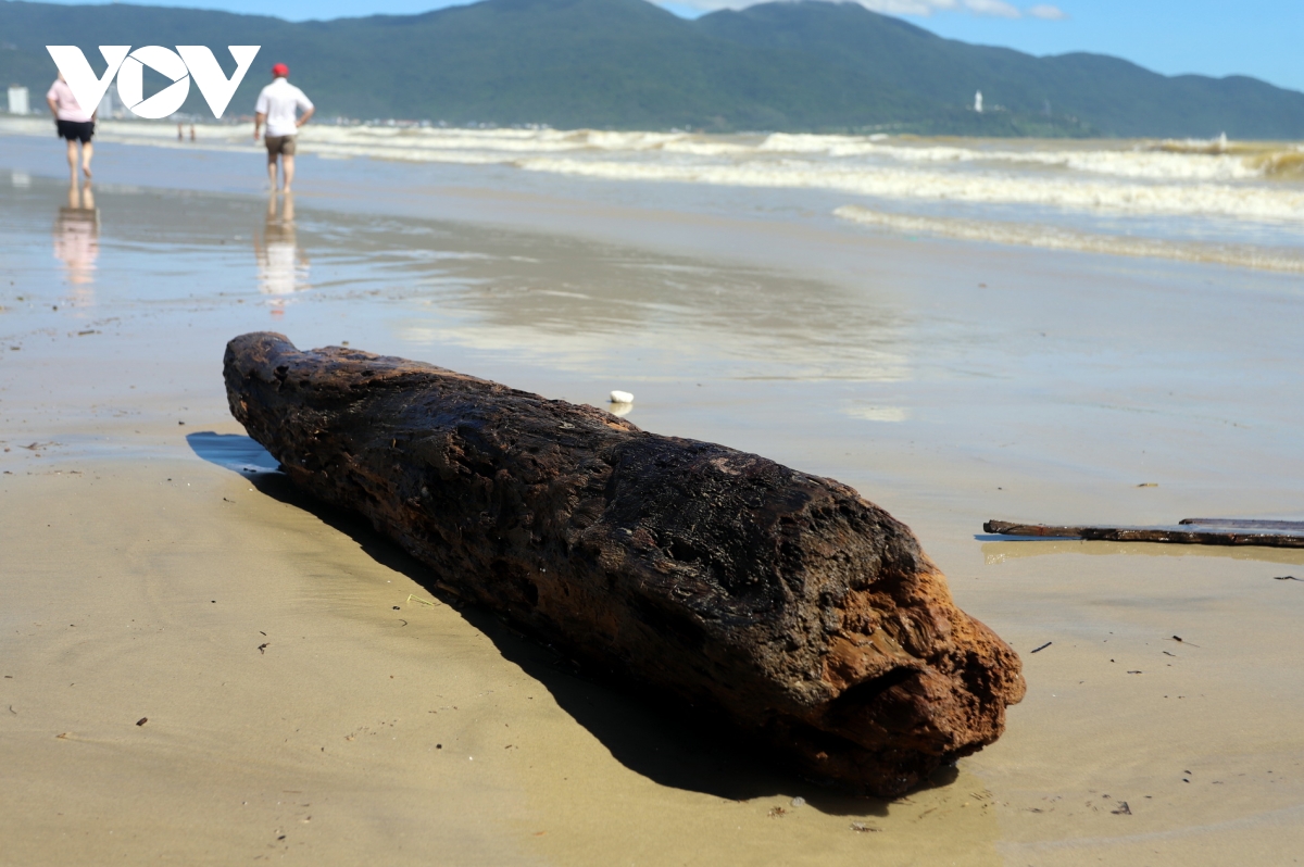 Nhiều khúc gỗ mục trôi dạt vào bãi biển Đà Nẵng