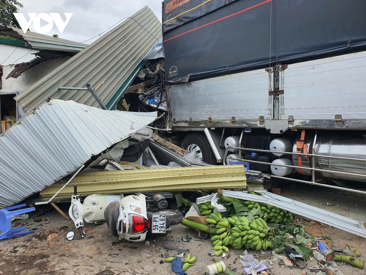 Xe biển kiểm soát 47C-230.23 tiếp tục lao vào lề đường tông vào bà Thái Thị L. trú xã Suối Tân, huyện Cam Lâm và bà Trịnh Thị Ng. trú xã Suối Cát, huyện Cam Lâm)., sau đó tiếp tục lao vào nhà kho của ông Võ Huy Hiếu, thôn Khánh Thành Bắc, xã Suối Cát làm đổ sập nhà kho và hư hỏng ô tô biển kiểm soát 79A-413.79 của ông Hiếu đang đỗ bên trong.