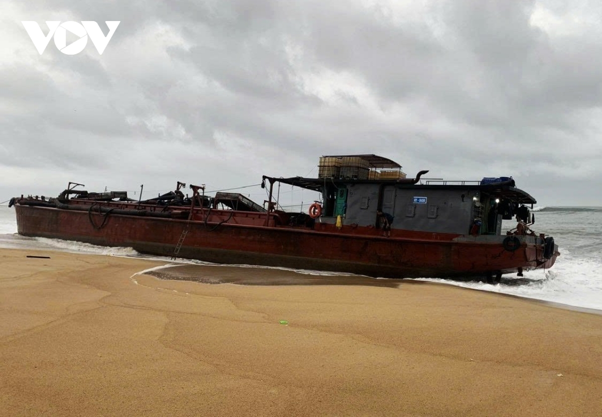 Đến khoảng 18h cùng ngày, tàu bị sóng đánh tấp vào bờ và mắc cạn tại khu vực cách cửa biển Mỹ Á khoảng 2km, thuộc địa phận tổ dân phố Trung Lý, phường Đức Phổ. Trên tàu có 5 thuyền viên và mang theo 2.000 lít dầu nhiên liệu của tàu.
