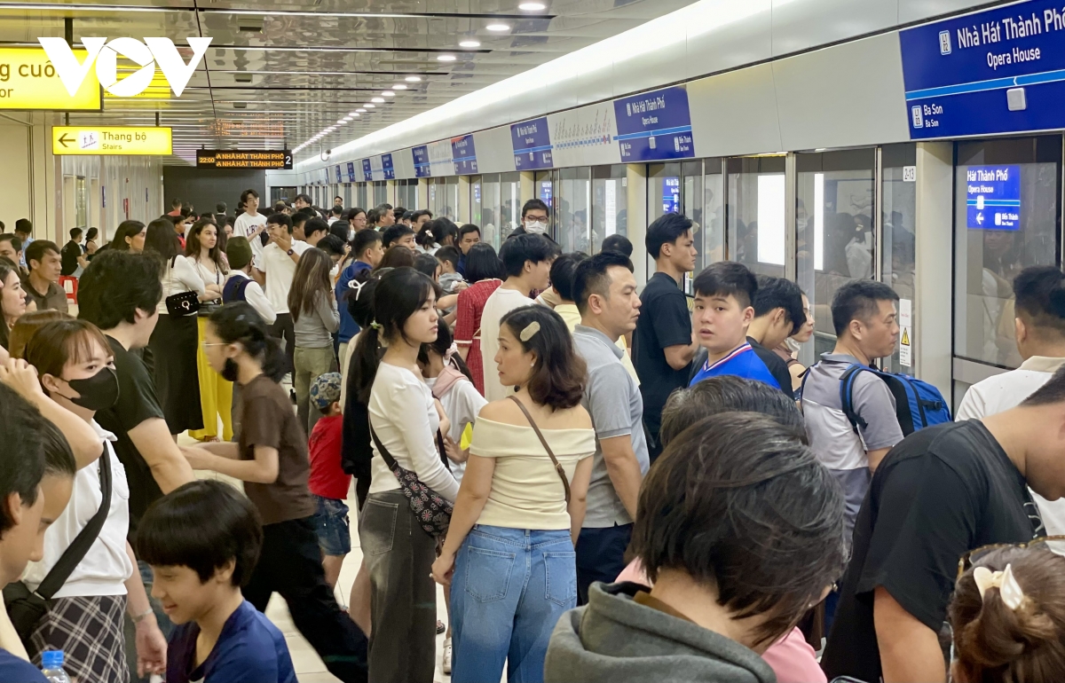 VOV.VN - Trong ngày vận hành 24/12 cũng là Lễ Giáng sinh, lượng người đi metro 1 (Bến Thành - Suối Tiên) tăng đột biến, gấp hơn 2 lần so với ngày trước đó.