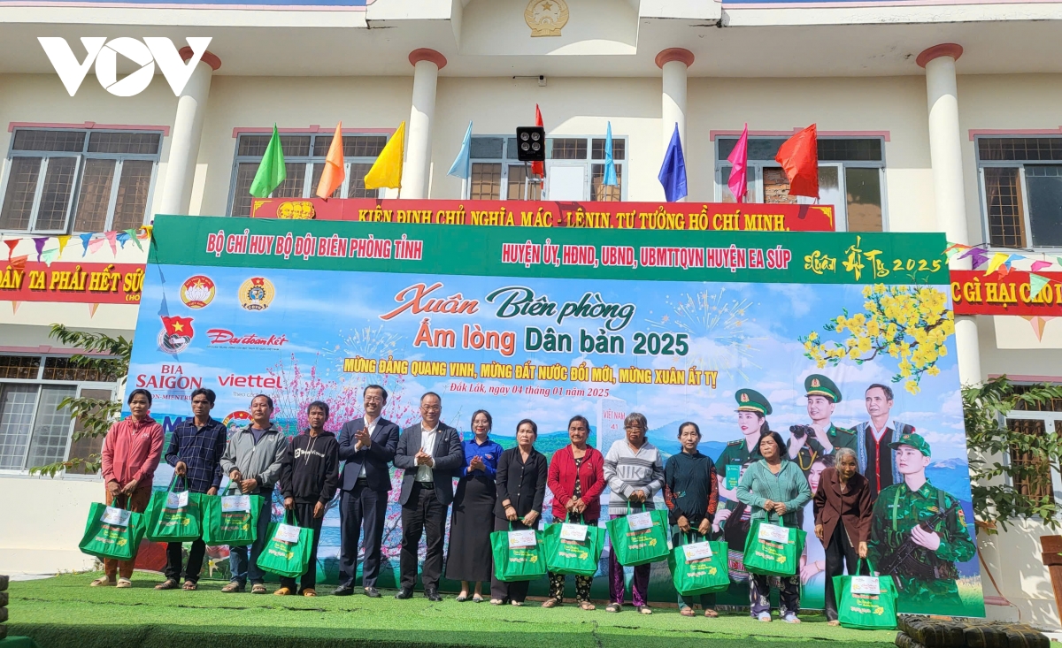 Bộ đội biên phòng Đắk Lắk trao quà Tết tặng bà con nghèo huyện biên giới Ea Sup.