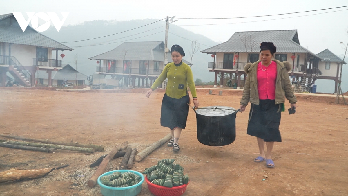 Cận Tết, bà Hoàng Thị Nóng và bà con hàng xóm ở khu tái định cư Làng Nủ quây quần trong căn nhà mới, cùng gói bánh chưng truyền thống của người Tày, vừa ôn kể chuyện cũ, nghĩ về tương lai.
