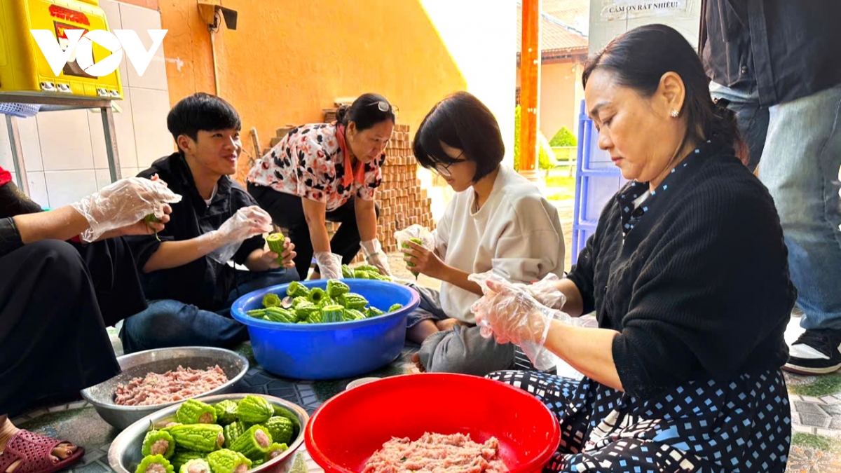 Gian bếp với sự chung tay của đoàn viên, công đoàn viên Cần Thơ nấu "bữa cơm tất niên" cho bệnh nhân đang điều trị tại Bệnh viện Ung bướu Cần Thơ