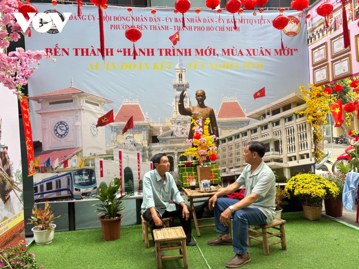 Tại phường Bến Thành, đây là cái Tết đầu tiên của người dân sau khi thực hiện sắp xếp, sáp nhập đơn vị hành chính. Khu phố 11, phường Bến Thành (trước đây là khu phố 4, phường Nguyễn Thái Bình, Quận 1) đã bố trí, trang trí không gian "Góc phố ngày Tết" với bố cục là phông nền gồm hình ảnh Chợ Bến Thành, ảnh Bác, bàn trà; hai bên gắn cành đào, cành mai. Đối diện là không gian văn hóa Hồ Chí Minh cùng những hoạt động của khu phố trong thời gian qua.
