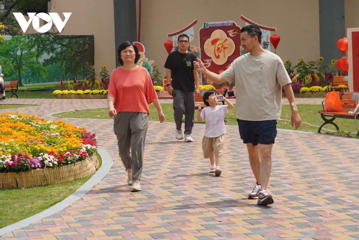 Dọc lối đi vào còn được trang trí bằng những chiếc đèn lồng đỏ, khiến không khí xuân tràn ngập con hẻm. Chị Kim Chiến, người dân sống tại khu phố 11, cho biết không gian ngày Tết năm nay khác với mọi năm, khi gắn với các hoạt động của khu phố và phường. Đây không chỉ là không gian văn hóa, mà còn là nơi để mọi người cùng sinh hoạt chung.