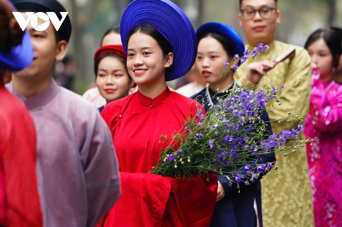 Theo ông Nguyễn Đức Bình, Chủ nhiệm Câu lạc bộ Đình Làng Việt, điểm nhấn của chương trình năm nay là sự kiện "Bách hoa bộ hành" Tết 2025 với sự tham gia của nhiều bạn trẻ, những người trân quý và đam mê cổ phục Việt: “Năm nay chúng tôi phối hợp với các bạn trong nhóm Bách hoa bộ hành, những người trẻ có trách nhiệm và khá kỹ càng về mặt tuyển lựa trang phục để tham gia. Với câu lạc bộ Đình làng Việt năm nay cũng thế, định hướng các bạn trang phục làm sao cho đẹp, cho đúng, không lòe loẹt. Ví dụ như năm nay chúng tôi rất tiết chế, hầu như những bộ áo dài truyền thống không có thêu rồng, thêu phượng, chúng tôi có quy định, bời vì chúng tôi muốn tôn vinh áo dài chứ không muốn biến áo dài thành một toan vẽ như khẩu hiệu”.