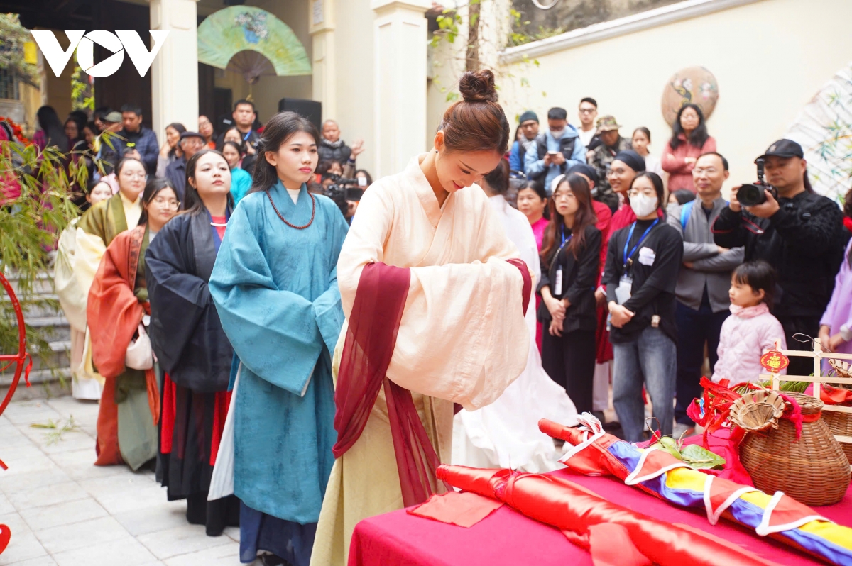 Bạn Đức Lâm, quê tỉnh Bắc Giang chia sẻ: “Giới trẻ như chúng em khi được tiếp xúc với các nghi lễ và khi được mặc trên chiếc áo ngũ thân của Việt Nam, em thấy rất vui và mong rằng các bạn trẻ có thể quan tâm nhiều hơn về các giá trị truyền thống. Văn hóa là dân tộc, bản sắc của Việt Nam, mình nên giữ gìn và phát huy".