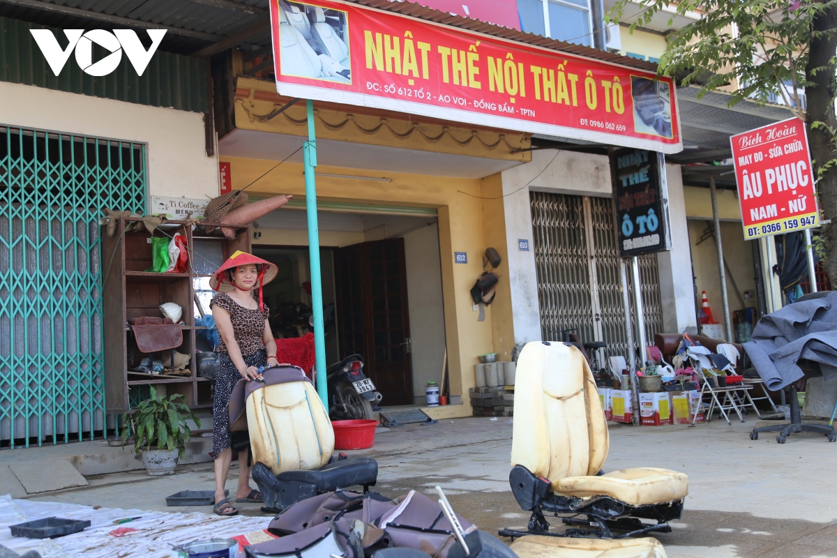Tranh thủ dọn dẹp lại cửa hàng đồ nội thất ô tô bị ngập, chị Phạm Thị Bích Hoàn, phường Linh Sơn cho biết: “Chắc chắn là hỏng đồ, máy móc ngập hết rồi, có khi lại phải đi vay ngân hàng mua. Hiện tại, mình tự khắc phục chứ biết trông vào ai, vì ai cũng bị ngập có phải riêng nhà mình đâu. Cố gắng 1-2 tháng sẽ khắc phục, mở lại cửa hàng như bình thường”.