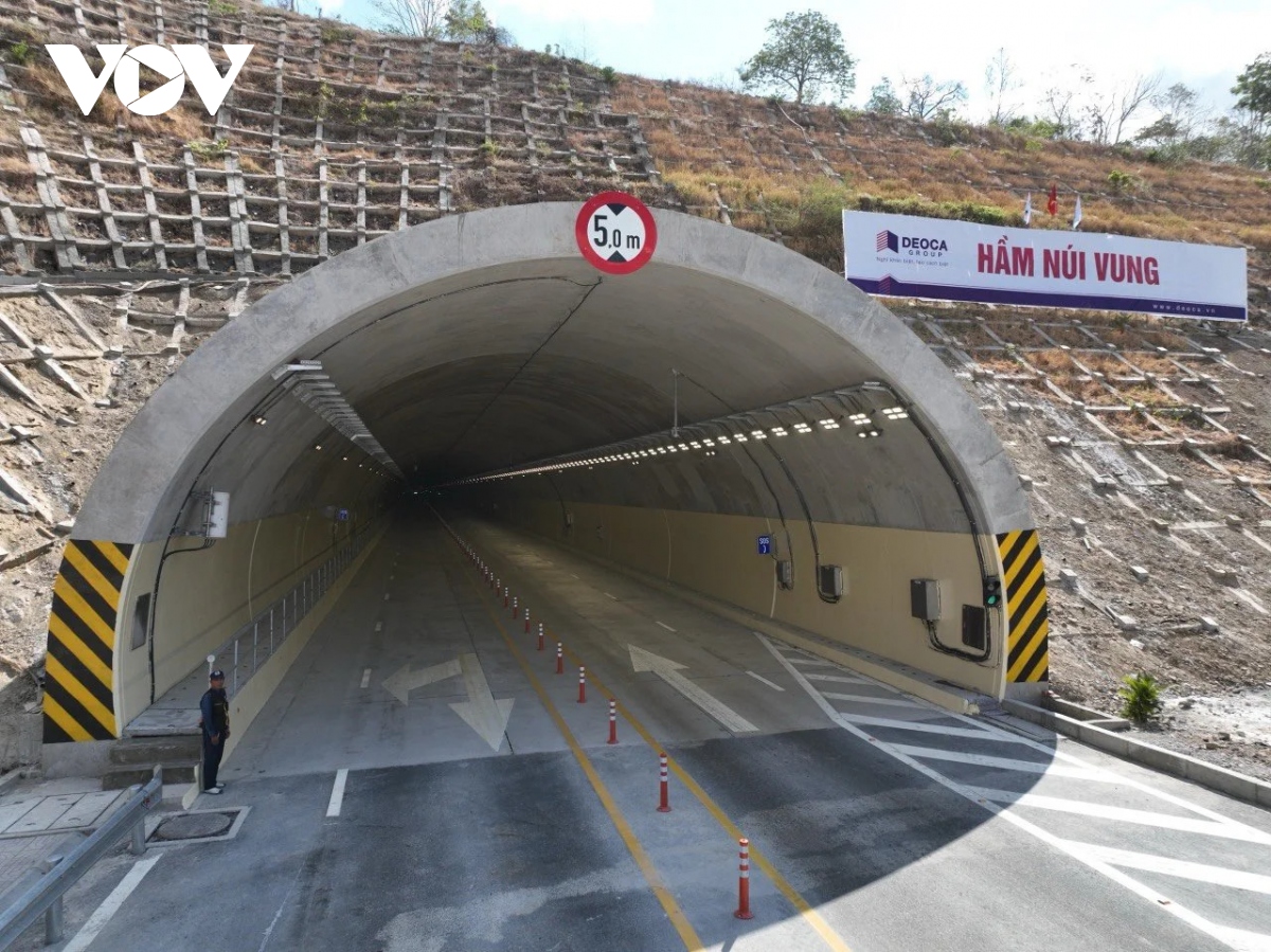 Trên tuyến có hầm Núi Vung dài 2,2km, quy mô 3 làn xe, bề rộng hầm 14m, giai đoạn 1 sử dụng ống hầm Phải, lưu thông 2 chiều. Đây là hầm đường bộ lớn thứ 4 cả nước sau hầm Hải Vân, hầm Đèo Cả và hầm Cù Mông do Tập đoàn Đèo Cả thực hiện.