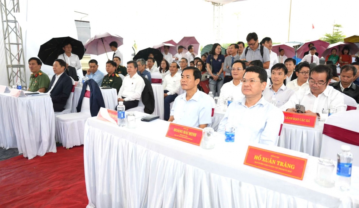 Các đại biểu dự lễ triển khai hai dự án Trường phổ thông nội trú liên cấp tại xã A Lưới 3