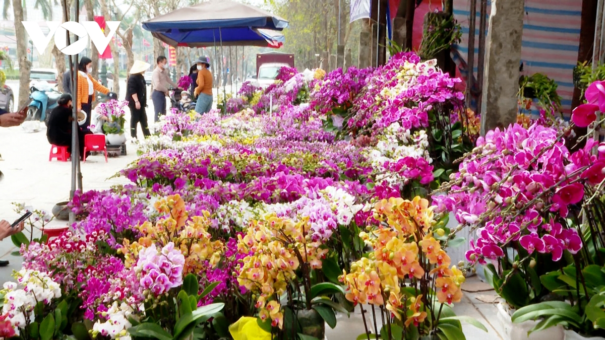 Thị trường hoa lan tại thành phố Vinh cũ, Nghệ An sôi động những ngày cận Tết. (Ảnh: Bá Thăng)