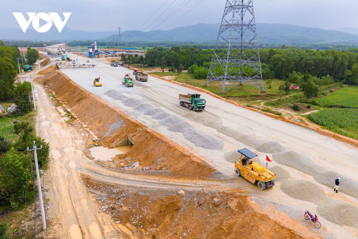 VOV.VN - Những ngày giáp Tết, tranh thủ thời tiết khô ráo, các nhà thầu, đơn vị thi công tập trung nhân lực, máy móc thiết bị đẩy nhanh tiến độ thi công trên công trình cao tốc Quảng Ngãi - Hoài Nhơn.