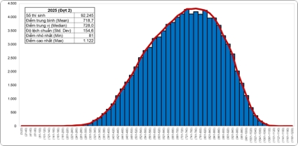 Tiến sĩ Nguyễn Quốc Chính cũng nhấn mạnh, khoảng điểm trải dài từ 120 đến 1.122 cho thấy sự đa dạng về trình độ của thí sinh.