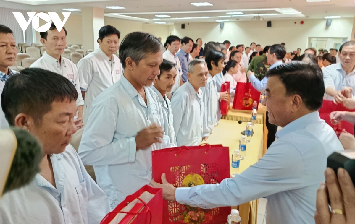 Ông Trần Cẩm Tú tặng quà các bệnh nhân đang điều trị tại Bệnh viện Trung ương Huế.