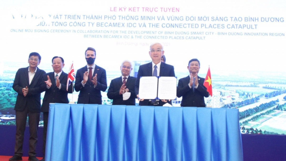 Tổng Công ty Becamex IDC và The Connected Places Catapult (CPC- thuộc chính phủ Vương quốc Anh là Tổ chức nghiên cứu và đổi mới sáng tạo) vừa ký kết trực tuyến để phát triển Đề án Thành phố thông minh và Vùng Đổi mới sáng tạo Bình Dương.
