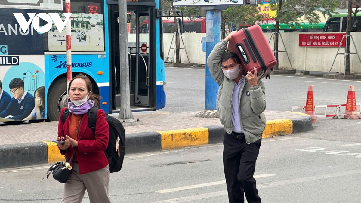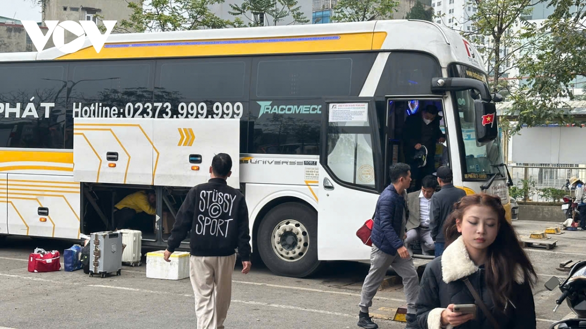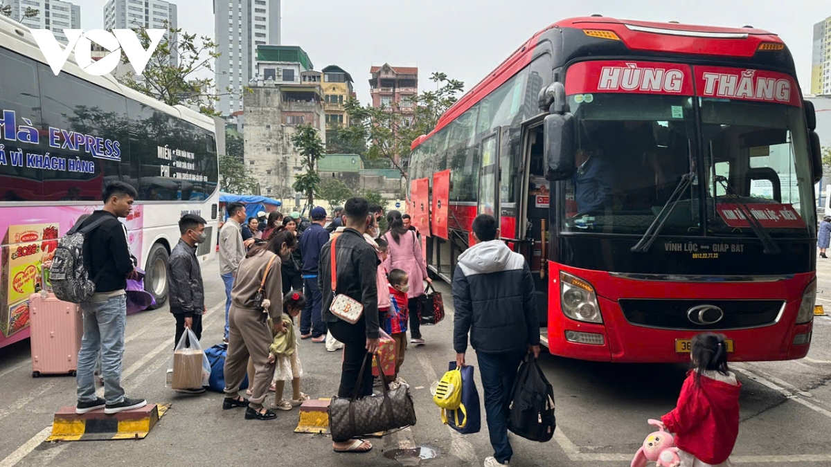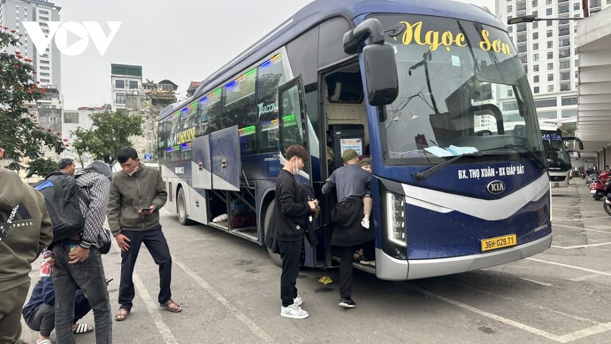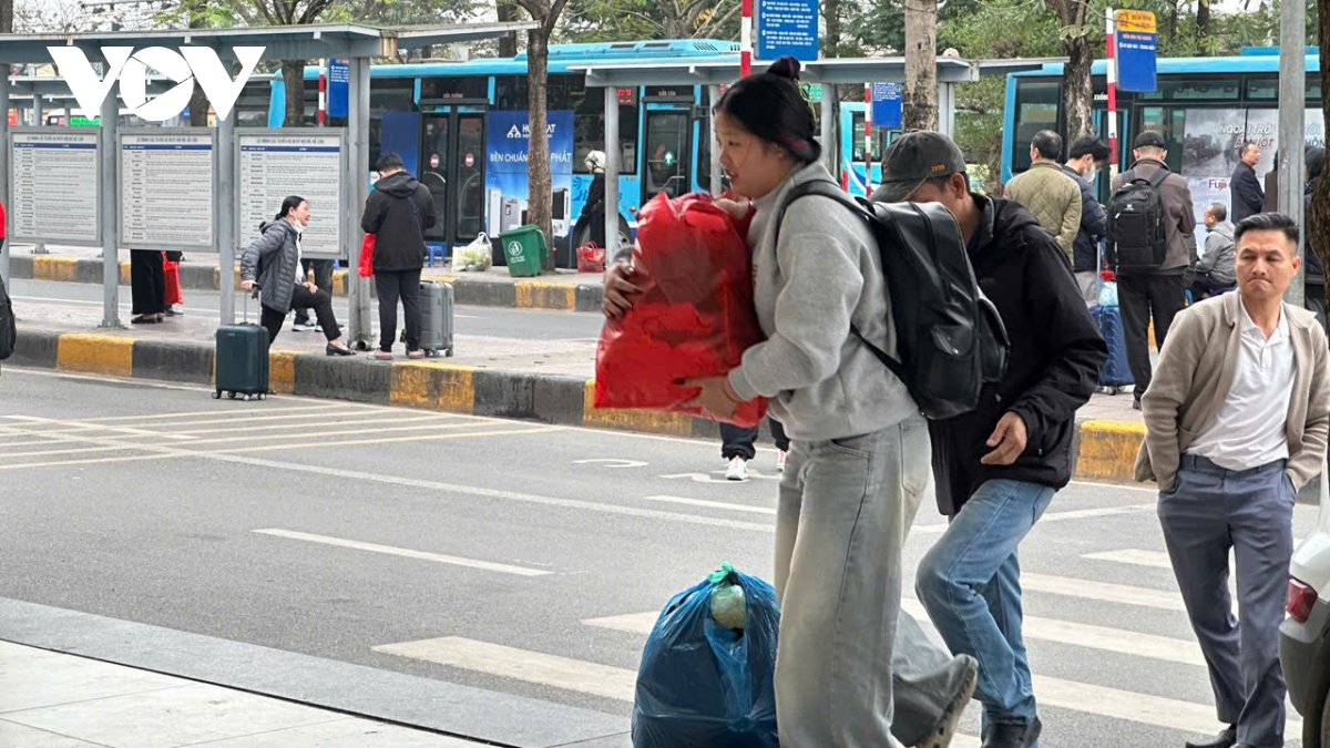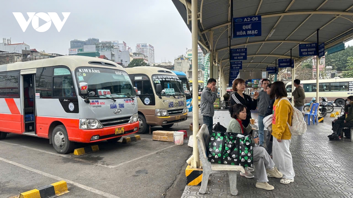 VOV.VN - Ngày mùng 2 và mùng 3 Tết Nguyên đán (18/2), Bến xe Giáp Bát (Hoàng Mai, Hà Nội) đã nhộn nhịp trở lại. Người tranh thủ về quê sum họp muộn, người từ quê ra sớm để vui chơi thăm bạn bè, đồng nghiệp và chuẩn bị công việc, học tập đầu năm.