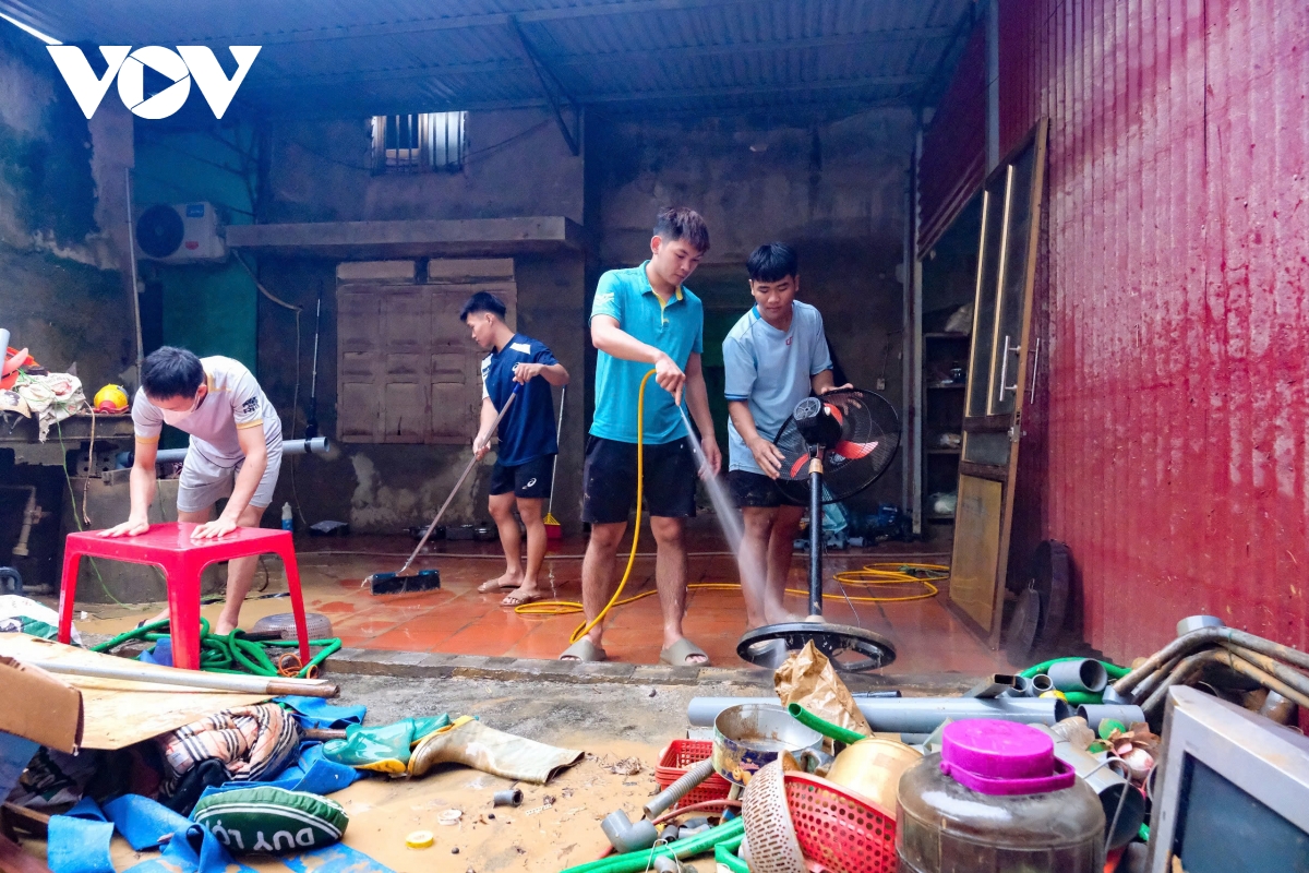 Người dân tiến hành dọn dẹp nhà cửa sau lũ