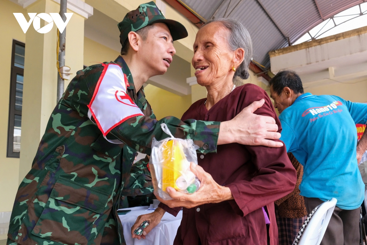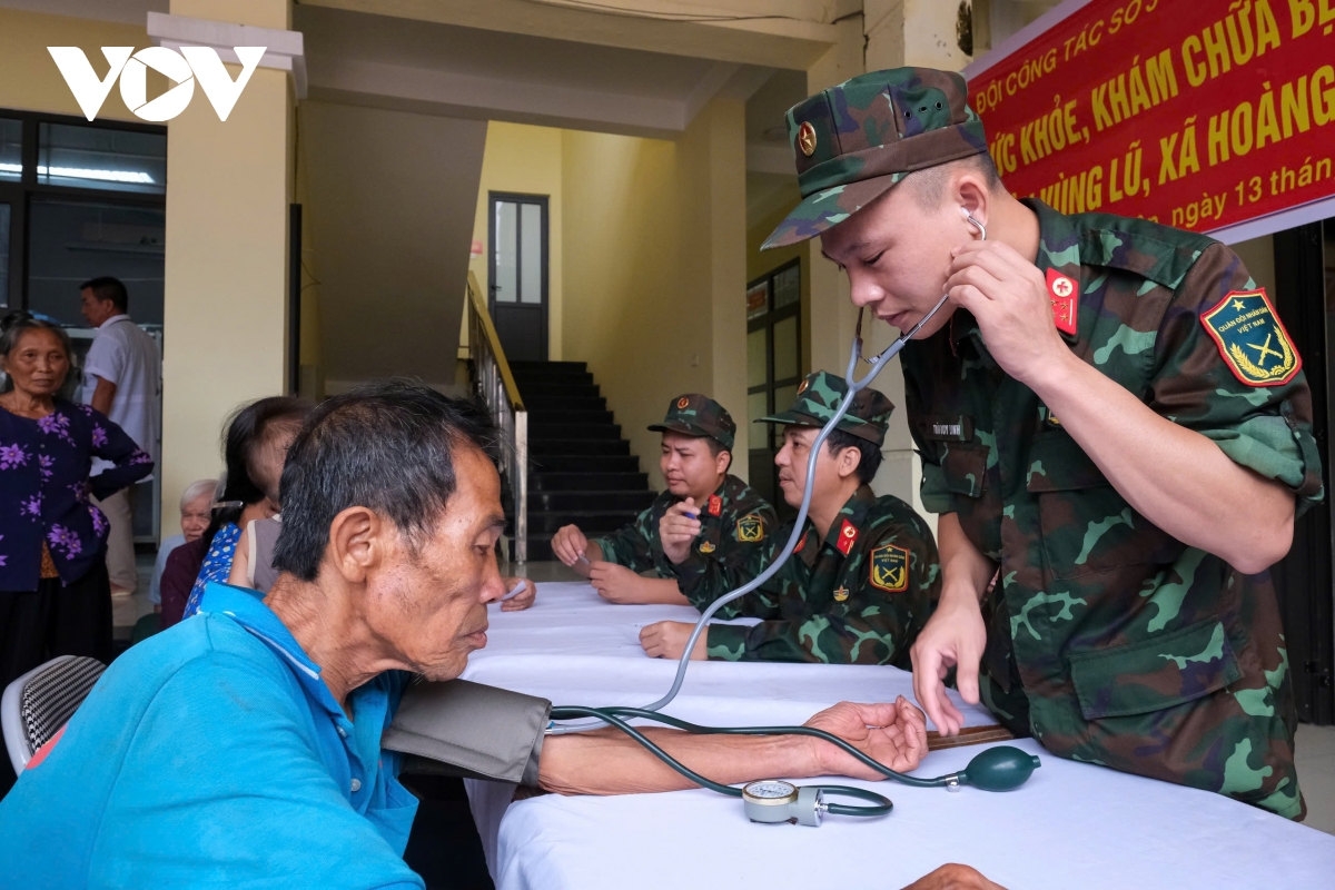 "Bộ đội quân y đến trực tiếp từng gia đình, hỗ trợ người dân để khám bệnh, tư vấn cấp thuốc miễn phí. Chúng tôi cũng hỗ trợ bà con xử lý môi trường, nguồn nước, rác thải sau bão lũ. Đây là các công việc ưu tiên vì dễ phát sinh dịch bệnh sau mưa lũ như bệnh lý đường tiêu hóa, hô hấp, đau mắt đỏ, bệnh ngoài da…", đại tá Cường cho hay.