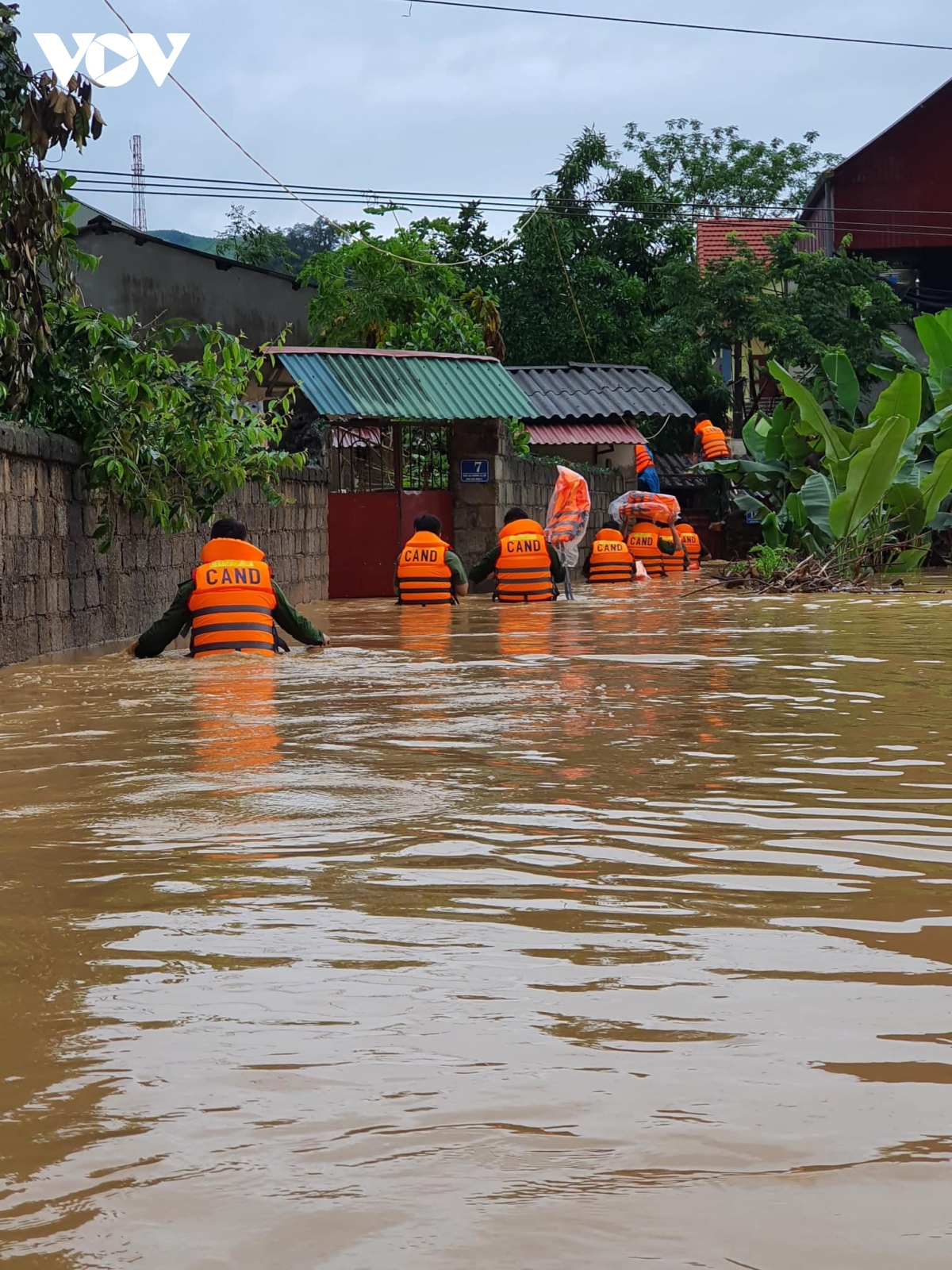 Công an huyện Bắc Sơn hỗ trợ bà con nhân dân di dời tài sản; tổ chức cung cấp lương thực, thực phẩm và thăm hỏi động viên các gia đình bị thiệt hại nặng do mưa lũ.