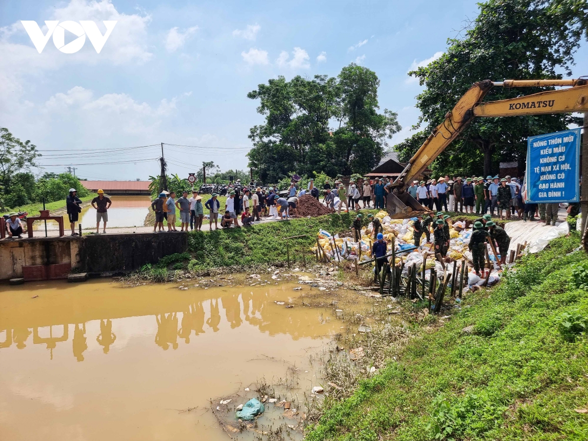 Hạ sĩ Vũ Lập Quốc, Tiểu đội Trưởng thuộc Trung đoàn 2, Sư đoàn 3, Quân khu 1 cho biết: “Nhìn nước lũ đang cao, các chiến sĩ đều cố gắng đắp bao đất, khó khăn nhất là khi đắp đất, nước vẫn tràn qua khiến mặt đê trũng nước, đòi hỏi mỗi cán bộ chiến sĩ phải thật sự khéo léo, nâng từng bao đất. Song mỗi cán bộ Trung đoàn 2 luôn luôn động viên nhau khắc phục, cố gắng vì nhân dân ở phía sau”.