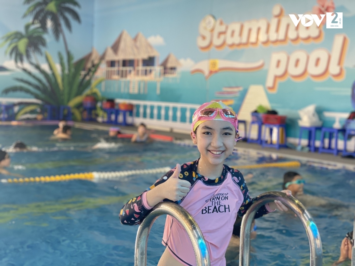 “Có những phụ huynh lo lắng vì con bị tăng động, tự kỷ, đã học ở những nơi khác nhưng không bơi được. Những bé đó được mình đào tạo theo quy trình do mình tự viết. Đó là chữa lành tâm thức sau đó mới dạy kỹ thuật bơi”, chị Lê Thu Hồng – CLB Hoa mặt trời.