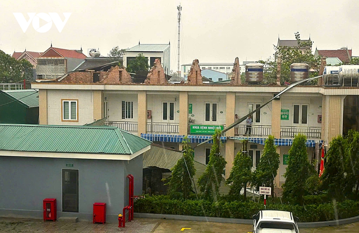 Theo đó, Bệnh viện Đa khoa Thanh Chương bị tốc mái, nhiều hạng mục hư hỏng nặng; Trung tâm Y tế Anh Sơn bị bay toàn bộ mái tôn nhà 3 tầng, nhiều cây cối đổ; Bệnh viện Huyết học Truyền máu Nghệ An bị tốc mái khu điều trị, sập giàn tôn, đổ bờ rào; Trung tâm Y tế Nghi Lộc bị bay mái tôn, nứt tường; và Bệnh viện Đa khoa TP Vinh bị thiệt hại lớn về cơ sở vật chất, Khoa bệnh nhiệt đới bị tốc mái hoàn toàn.
