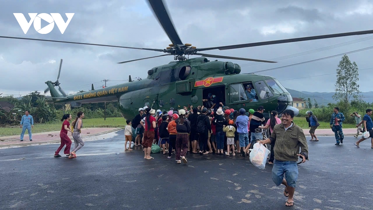 Trong ngày 23/11, Trung đoàn 917, Sư đoàn 370, Quân chủng PKKQ đã thực hiện tổng cộng 9 chuyến bay trực thăng, vận chuyển gần 20 tấn hàng hóa gồm lương thực, nhu yếu phẩm và trang bị cấp thiết.