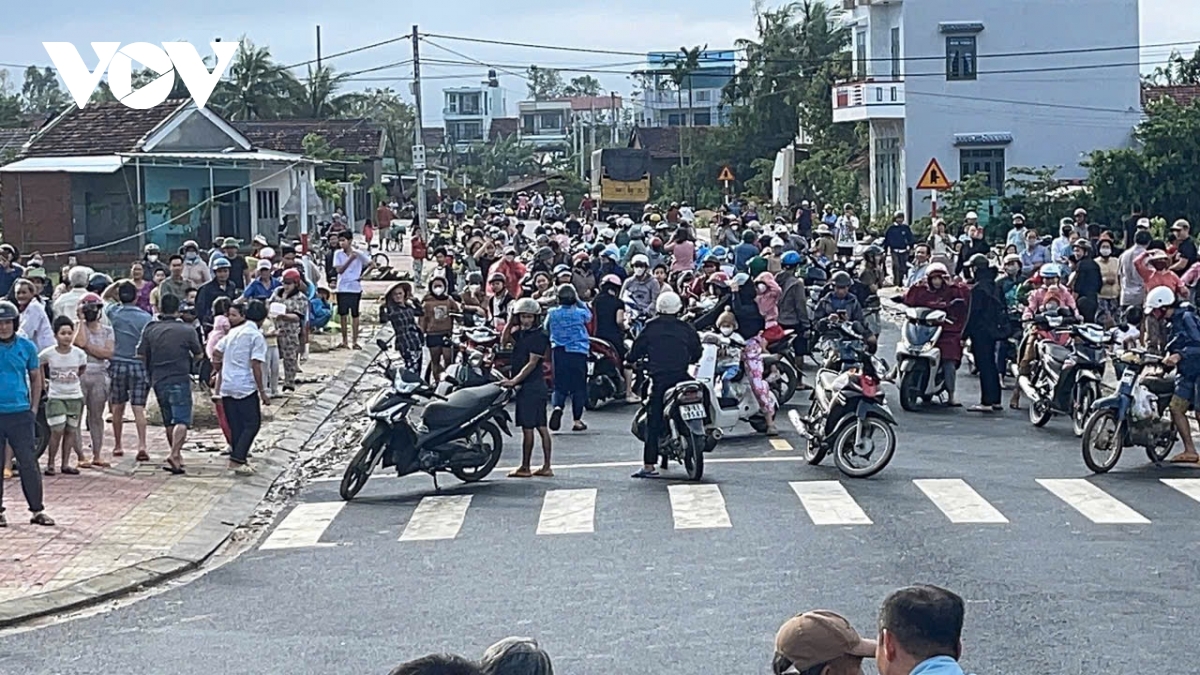 Hàng trăm người dân cùng cán bộ địa phương chờ tiếp nhận hàng cứu trợ