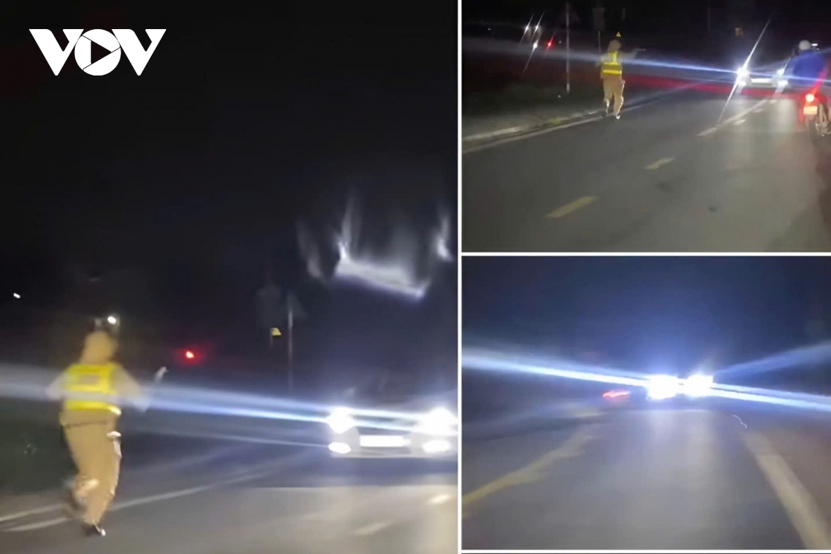Clip ghi lại cảnh một xe ô tô chạy lùi với tốc độ cao, không chấp hành hiệu lệnh kiểm tra của cán bộ CSGT tại Thái Nguyên (nguồn: Cục Cảnh Sát Giao Thông)