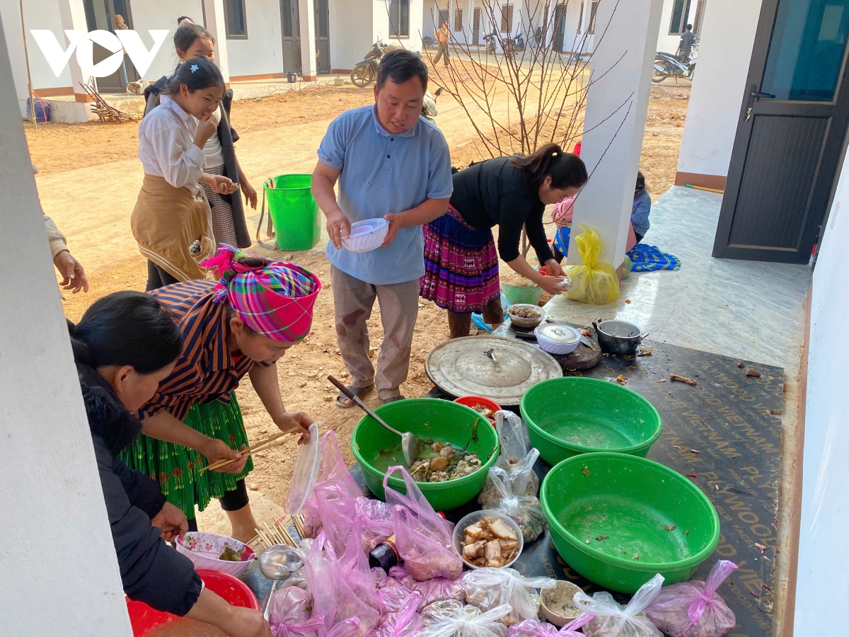 Nhấp chén chè xanh, đưa mắt nhìn ngôi nhà khang trang, anh Cụa bộc bạch, những năm trước, Tết đến lo đủ thứ, thiếu cái này, cái kia, nhà gỗ nhỏ, trẻ con không có chỗ chơi. Năm nay thì khác rồi, mỗi gia đình khi vào nhà mới đã có sẵn các đồ dùng thiết yếu như: bàn ghế, giường tủ, chăn, gối, bàn ghế ăn cơm, chạn bát... giờ chỉ chăm chỉ làm ăn để ổn định cuộc sống mà thôi.