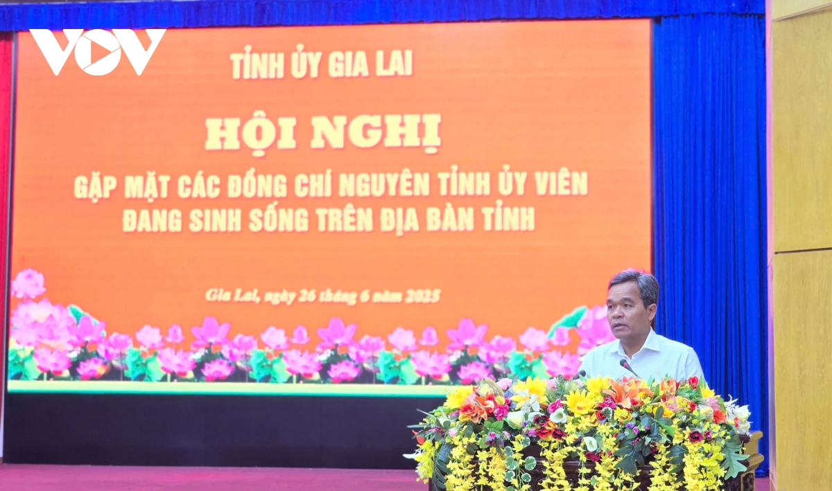 VOV.VN - Chiều 26/6, Tỉnh ủy Gia Lai tổ chức buổi gặp mặt các đồng chí nguyên Ủy viên Ban chấp hành Đảng bộ tỉnh đang sinh sống trên địa bàn. Sự kiện diễn ra sát ngày tỉnh Gia Lai hợp nhất với tỉnh Bình Định vào 1/7 tới đây, kết thúc chặng đường 93 năm Gia Lai là tỉnh miền núi, mở ra chặng đường phát triển mới.