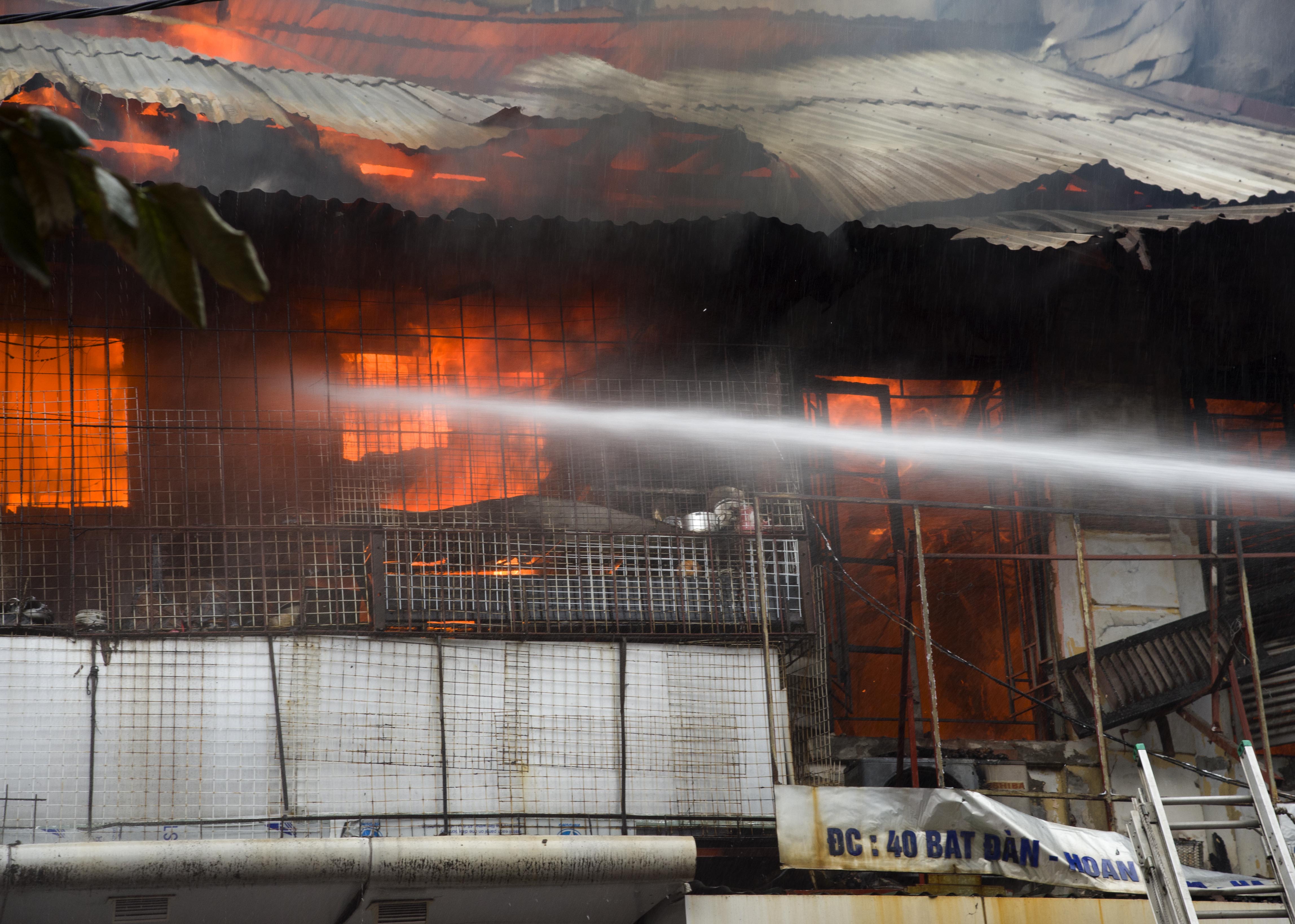 | Ngay sau khi phát hiện cháy, người dân nhanh chóng di tản, hô hoán và báo lực lượng PCCC Hà Nội, Cơ quan chức năng của phường nhanh chóng có mặt, phong tỏa hiện trường, nhắc nhở người dân tránh xa đám cháy. |