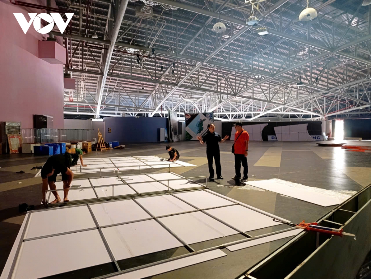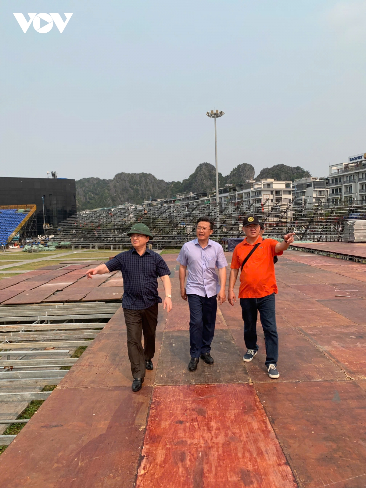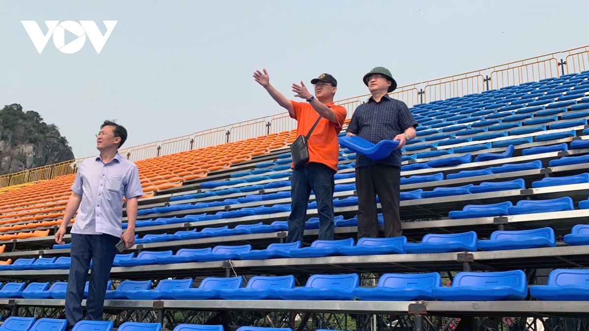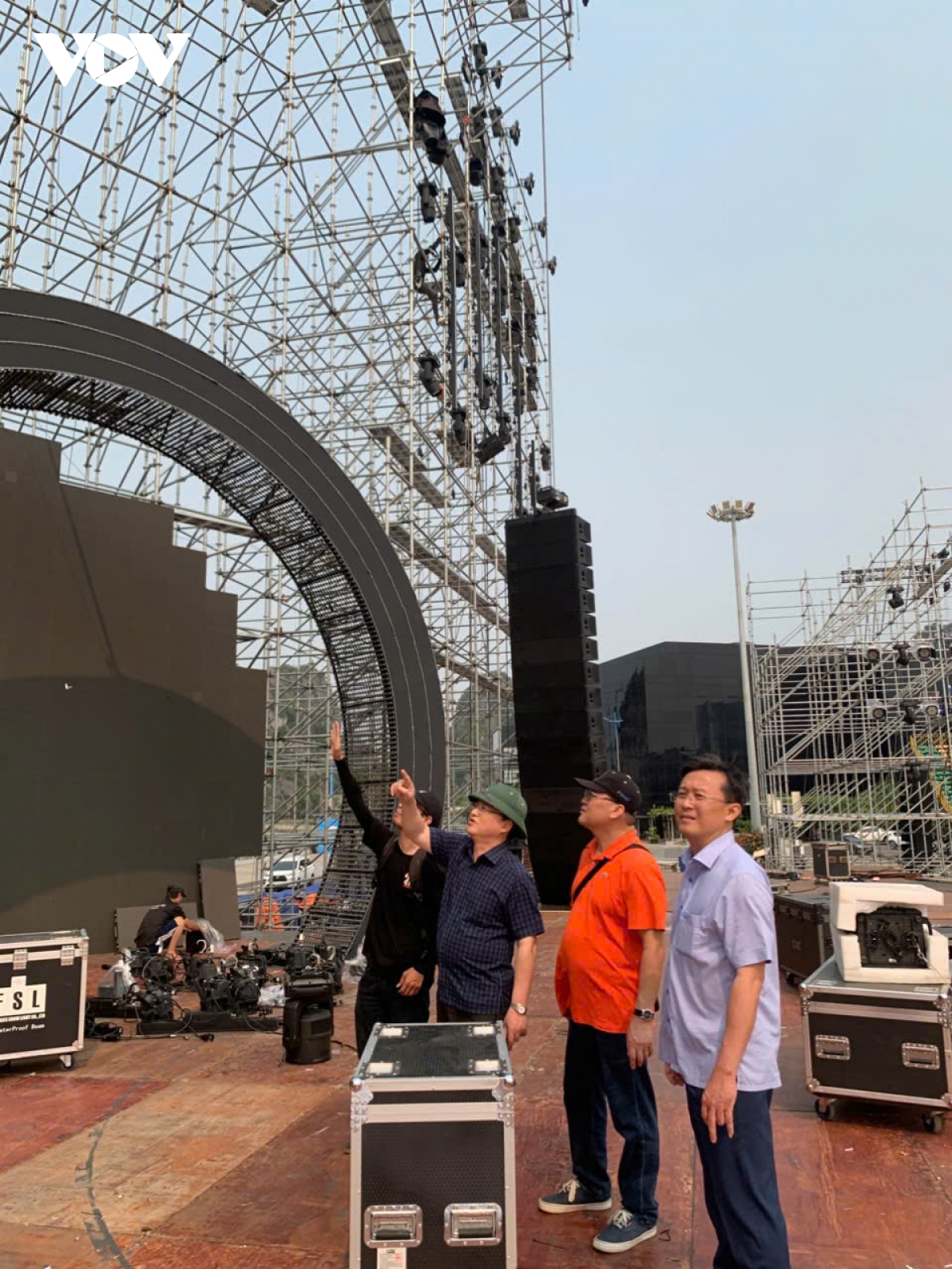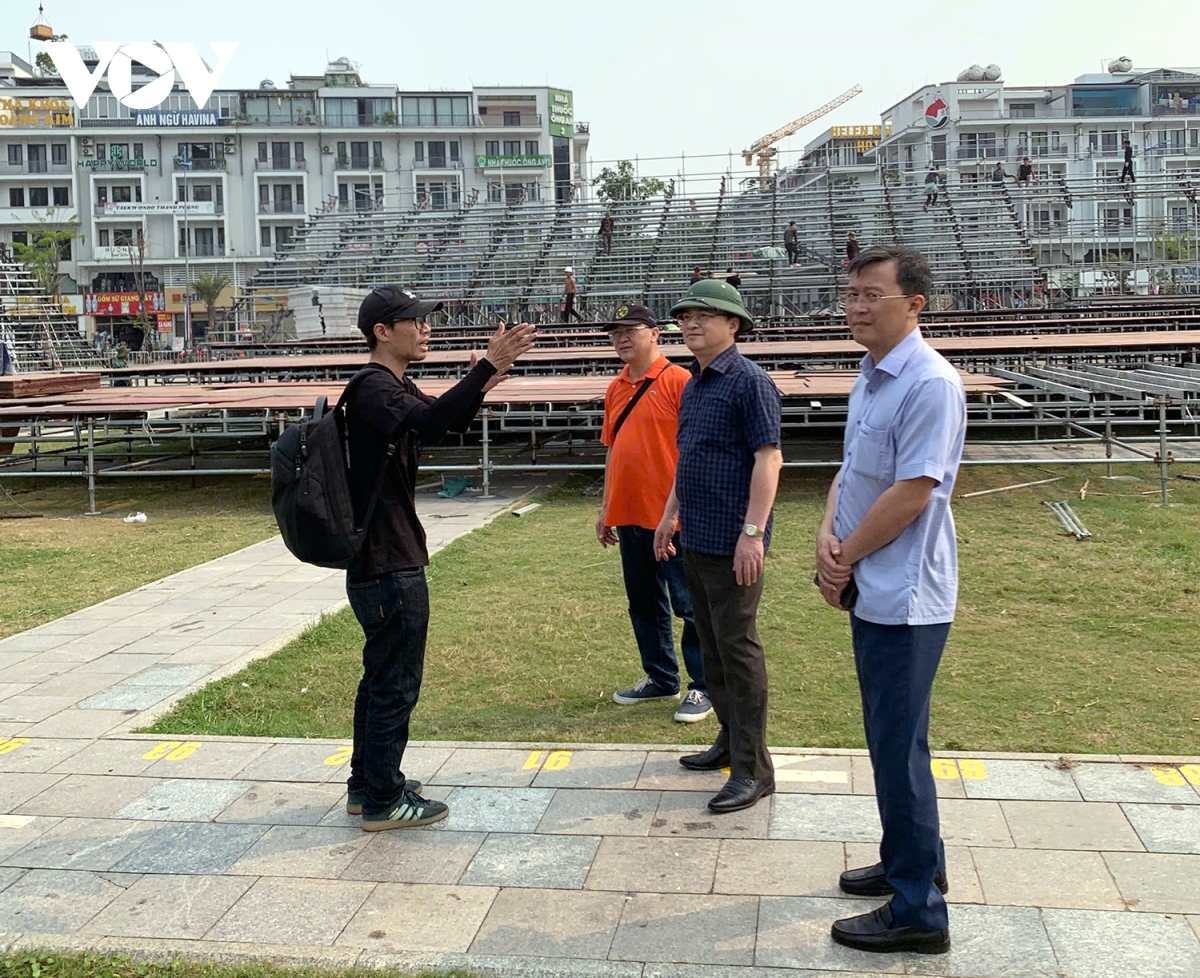 Kiểm tra tại Quảng trường 30/10, nơi đang lắp ráp sân khấu, khán đài cho chương trình khai mạc, Tổng Giám đốc Đài Tiếng nói Việt Nam đề nghị các đơn vị rà soát kỹ hệ thống kỹ thuật, phương án bảo đảm an ninh trật tự, phòng cháy chữa cháy và các điều kiện phục vụ khán giả.