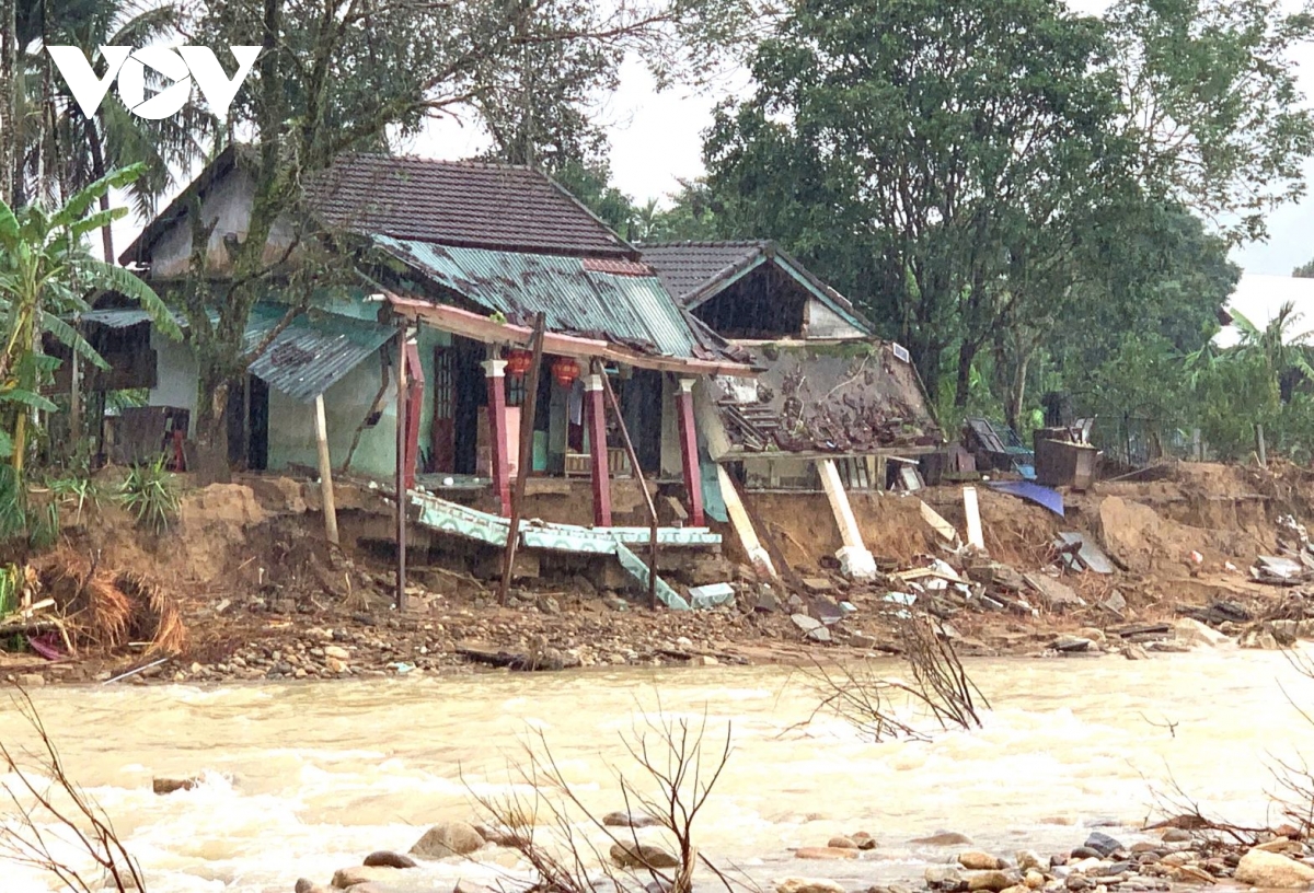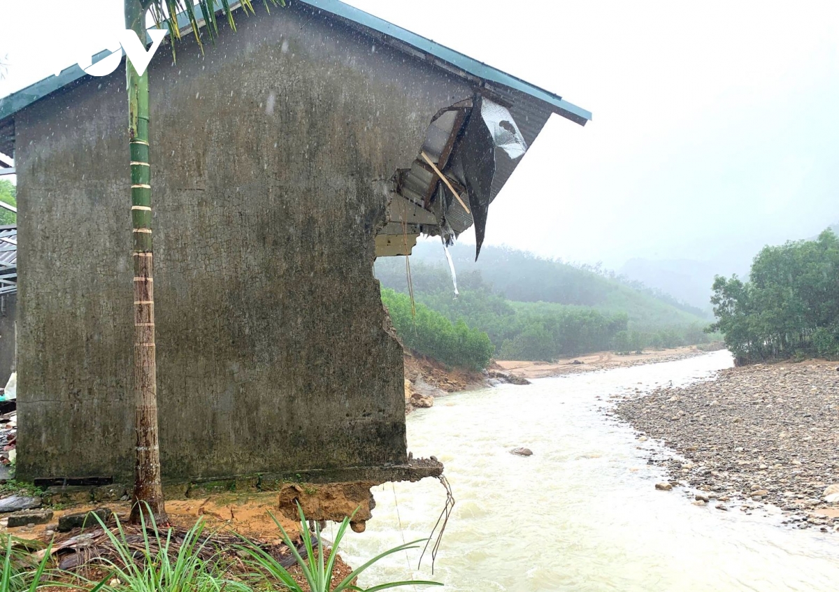 Đang ở nhờ bên nhà hàng xóm, bà Nguyễn Thị Khuyên, ở thôn Xuân Phú, xã Khe Tre lặng lẽ nhìn về phía ngôi nhà, nơi từng là mái ấm của gia đình, giờ đã bị sạt lở cuốn trôi, phần còn lại nằm chênh vênh bên mép sông. Cả đời dành dụm mới xây được căn nhà. Giờ lũ cuốn đi khiến bà nghẹn nghào.