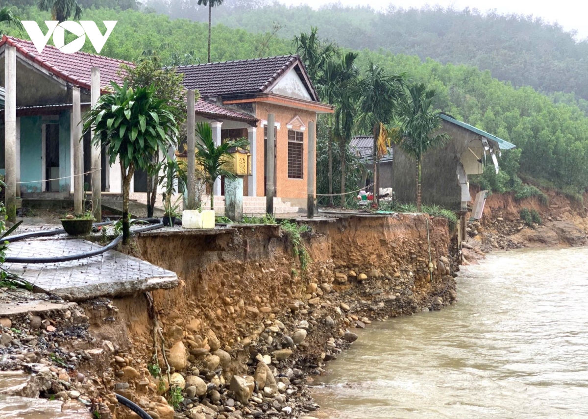 Nhà dân ở xã Khe Tre, thành phố Huế nằm chênh vênh bên mép sông