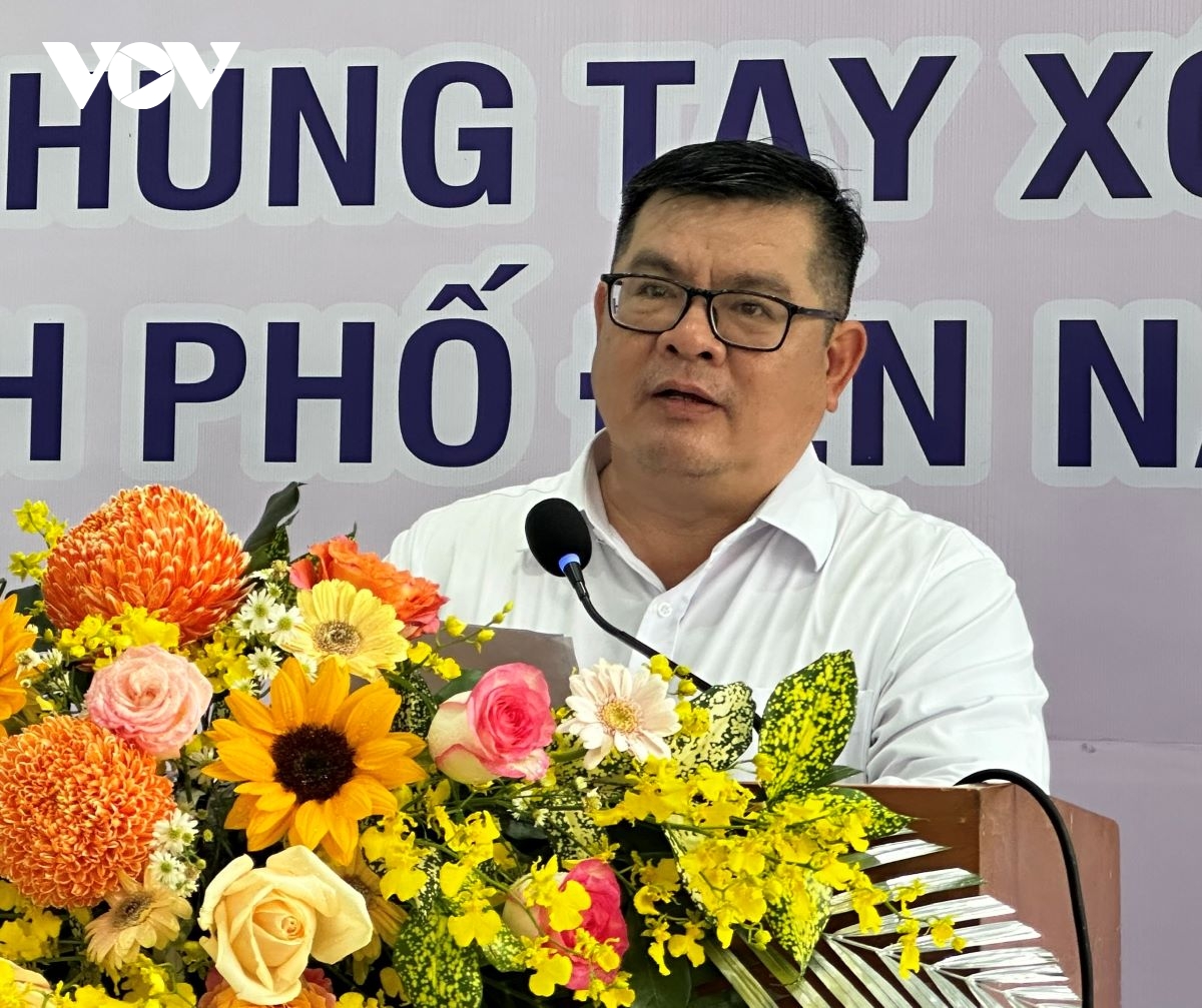 Phát biểu tại buổi lễ, Phó Chủ tịch Ủy ban MTTQ Việt Nam TP.HCM Ngô Thanh Sơn cho biết: hưởng ứng lời kêu gọi của Chủ tịch Ủy ban Trung ương MTTQ Việt Nam về phong trào “Chung tay xóa nhà tạm, nhà dột nát trên phạm vi cả nước”, MTTQ thành phố đã triển khai kế hoạch, tổ chức phát động hưởng ứng phong trào nhanh chóng, kịp thời. TP phấn đấu xóa 100% nhà tạm, nhà dột nát cho các hộ nghèo, hộ cận nghèo, khó khăn có đủ điều kiện về pháp lý, hoàn thành trước 30/4/2025 – kỷ niệm 50 năm giải phóng miền Nam, thống nhất đất nước.