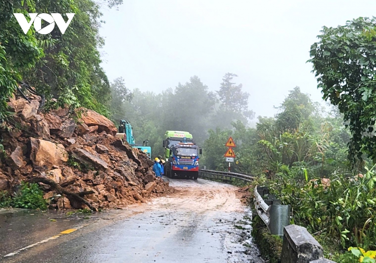 Nhận được tin báo, lực lượng phòng thủ dân sự xã A Lưới 1 cùng đơn vị quản lý đường bộ tiến hành rào chắn, không cho phương tiện qua lại, đồng thời huy động phương tiện, nhân lực khắc phục sự cố.