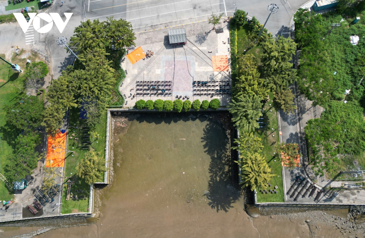 Đây là điểm bắn pháo hoa quen thuộc, mọi người có thể ngắm pháo hoa thuận lợi nhất từ bờ sông phía Quận 1