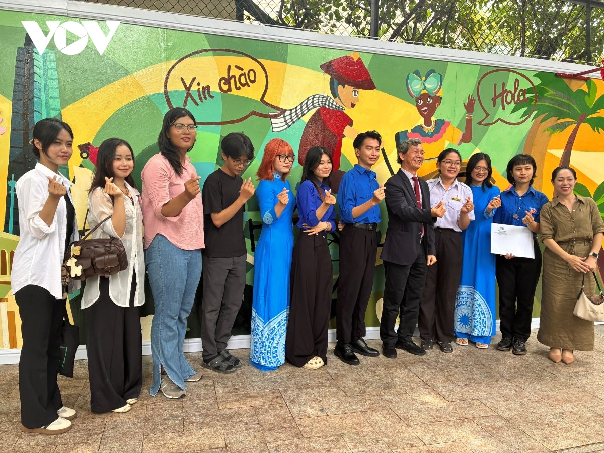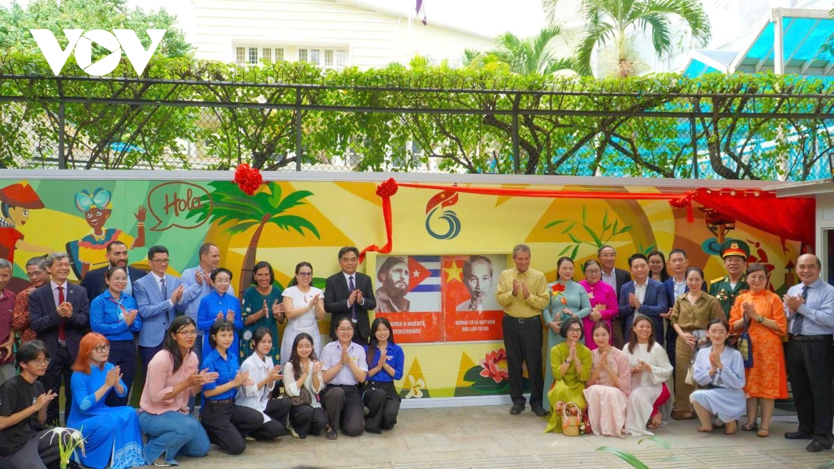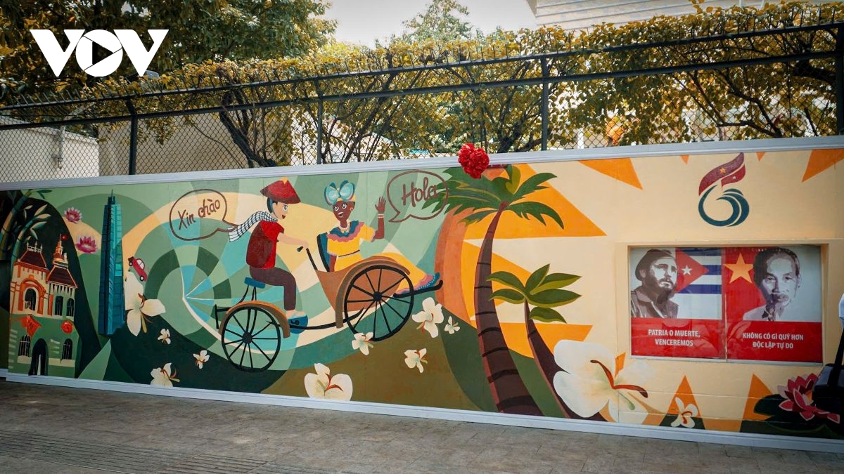 VOV.VN - Một bức tranh tường nghệ thuật vừa được khánh thành trước Tổng lãnh sự quán Cuba tại TP.HCM nhân dịp kỷ niệm 65 năm thiết lập quan hệ ngoại giao Việt Nam - Cuba.