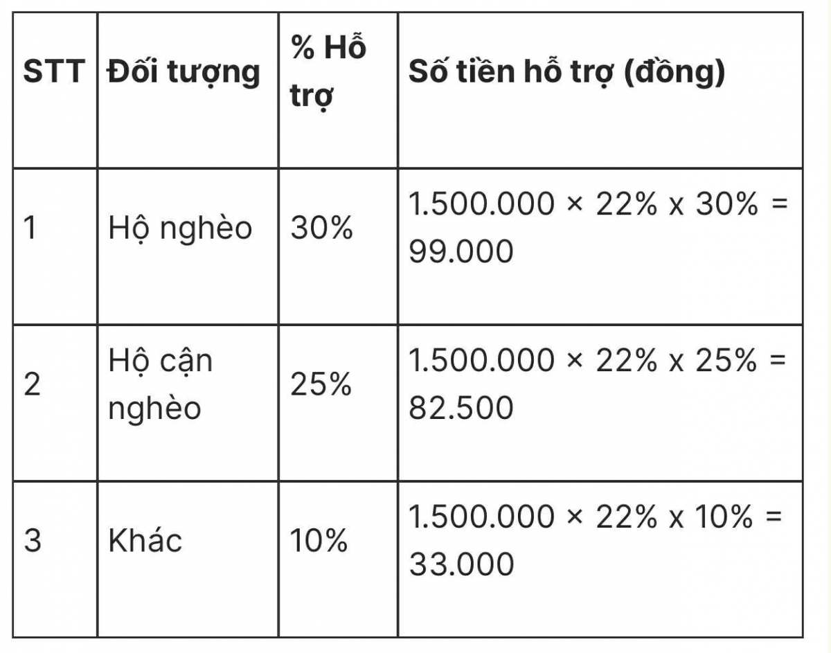 Mức đóng BHXH tự nguyện = 22% x Mức thu nhập tháng đóng BHXH - mức Nhà nước hỗ trợ đóng.