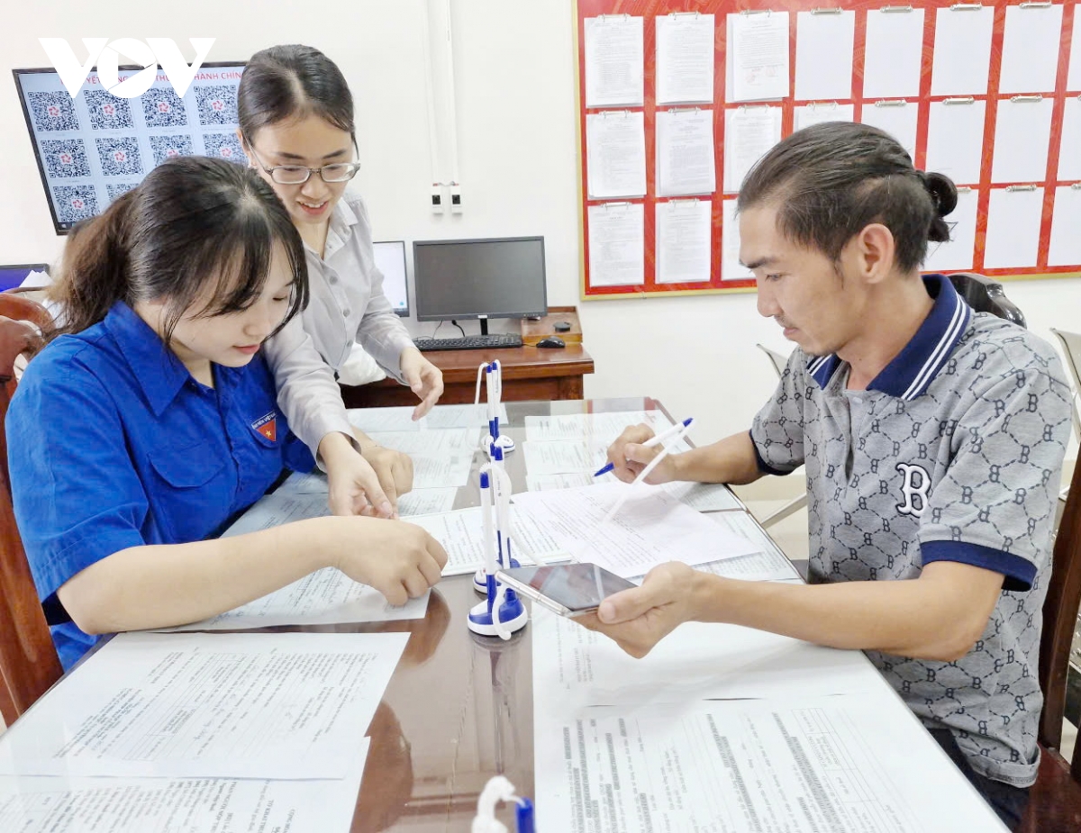 Sinh viên hỗ trợ người dân làm các thủ tục giấy tờ liên quan