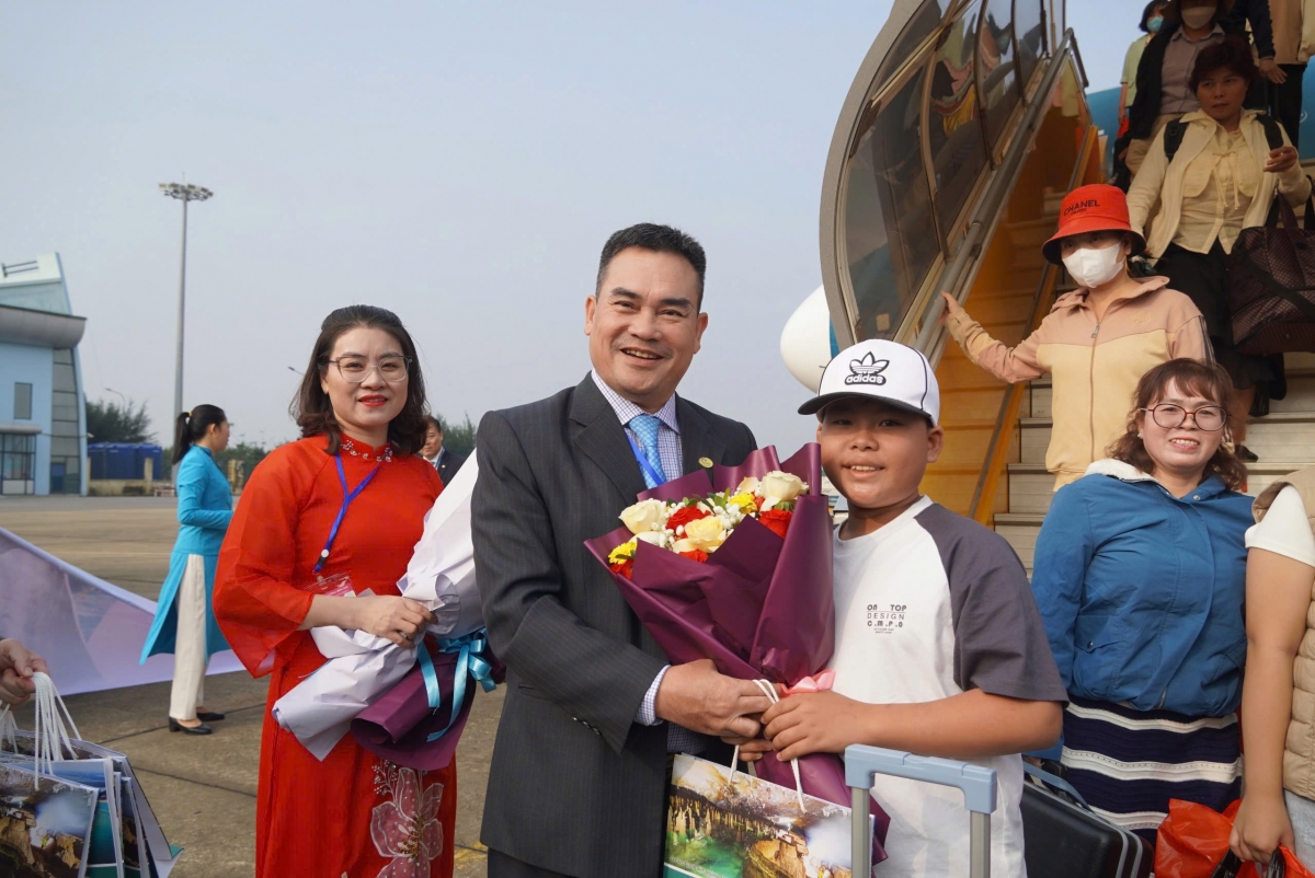 TP.HCM đón những hành khách đầu tiên từ Paris (Pháp) trên chuyến bay VN 10. Trong khi đó, hành khách trên chuyến bay VN 110 từ TP. HCM là những vị khách "xông đất" Đà Nẵng năm 2025.