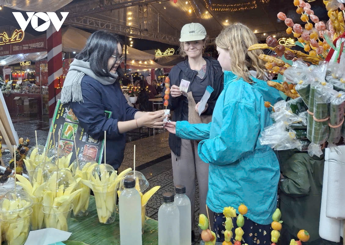 Du khách được thưởng thức hơn 100 món ăn đặc trưng địa phương, vùng miền và quốc tế. Người dân và khách du lịch còn hòa mình vào không gian vui chơi giải trí và trải nghiệm như làm kẽm nhung, nến thơm, vẽ tranh sáng tạo tự do, làm hoa đào, hoa mai, chậu hoa, bao lì xì, thiệp chào năm mới... thi trang trí cây thông Noel, hóa trang ông già Noel.