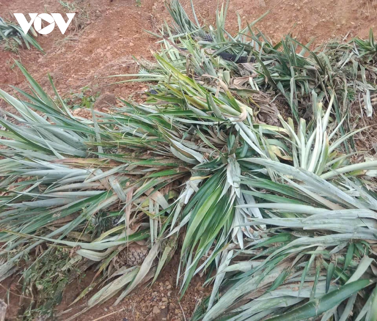 Khoảng 1.000 héc ta dứa đang chuẩn bị thu hoạch bị cuốn trôi, vùi lấp bởi lũ và sạt trượt đất đá, ảnh hưởng lớn đến kinh tế và phục hồi sản xuất.
